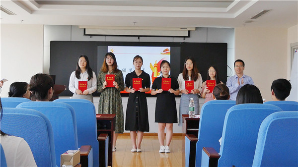 院党委书记赵彩清宣读了《关于表彰外国语学院2018—2019年度优秀学生党员的决定》,都嘉利等六名同志被评为优秀共产党员,校党委组织部副部长姜玉原为受到表彰的同志颁发获奖证书。