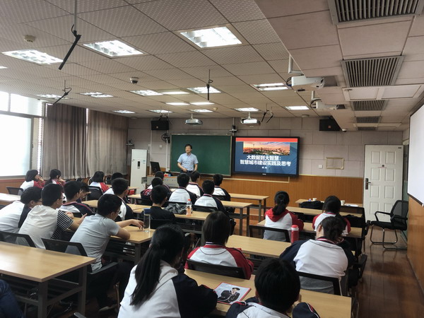 姚羽教授先后在三所中学开展了题为“大数据到大智慧,智慧城市建设实践及思考”的科普性学术报告,受到高中生们的热烈欢迎。