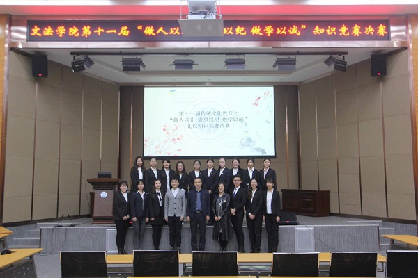 据悉,文法学院“做人以礼 做事以纪 做学以诚”系列活动由学院团委主办,旨在弘扬中华传统美德,全面提高学生的思想道德素质和文明礼仪素养,营造阳光、和谐、健康的校园氛围。第十一届活动于今年3月初启动,4月中旬在全院范围内开展初赛选拔,初赛成绩前四名的团支部参加决赛。