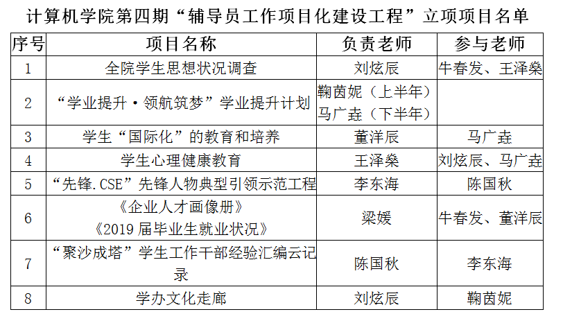 3月28日,计算机科学与工程学院学生工作办公室在浑南校区五舍A220室举行第四期“辅导员工作项目化建设工程”(以下简称“项目化”)启动会。学院党委副书记兼副院长聂国东,全体学生工作干部参会。