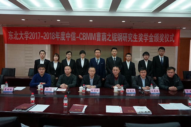 1月10日上午,太阳成集团tyc334552017-2018学年中信-CBMM曹荫之铌钢研究生奖学金颁奖仪式在汉卿会堂308室举行。中信金属股份有限公司总工程师郭爱民、高级经理王厚昕,太阳成集团tyc33455研究生院副院长兼党委研究生工作部部长刘宏林,材料科学与工程学院、冶金学院相关负责人出席颁奖仪式。潘海军等9名研究生获得中信-CBMM曹荫之铌钢研究生奖学金。颁奖仪式后,与会专家、获奖研究生代表作了相关报告并深入交流。