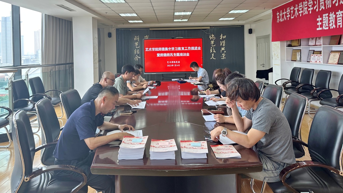 7月4日上午,艺术学院党委在主楼912会议室召开师德集中学习教育工作推进会暨师德师风专题培训会,会议由党委书记张哲主持,各基层学术组织负责人、教职工党支部书记参会。