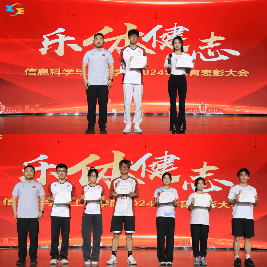 表彰会上,全体师生共同回顾和总结了近年来信息学院学生在体育方面取得的优异成绩。与会嘉宾为获奖学生代表颁奖。信息学院团委负责人宣读《关于进一步加强“乐体健志”体育育人工作的实施办法(试行)》。信息学院学生工作负责人宣读信息学院2024年“乐体健志”体育奖和体育奖学金的表彰名单。信硕2108班团支部控制科学与工程专业马梦瑶等3名同学获得“卓越成就奖”;自动化2203班团支部杨婷蛟等8名同学获得“突出贡献奖”;自动化类2308班团支部李敏华等5名同学获得“超级新星奖”;自动化类2302班团支部张硕等14名同学获得“优秀个人奖”;学生羽毛球队教练,控制工程专业2021级博士蔡炟等17名同学获得“优秀组织奖”。