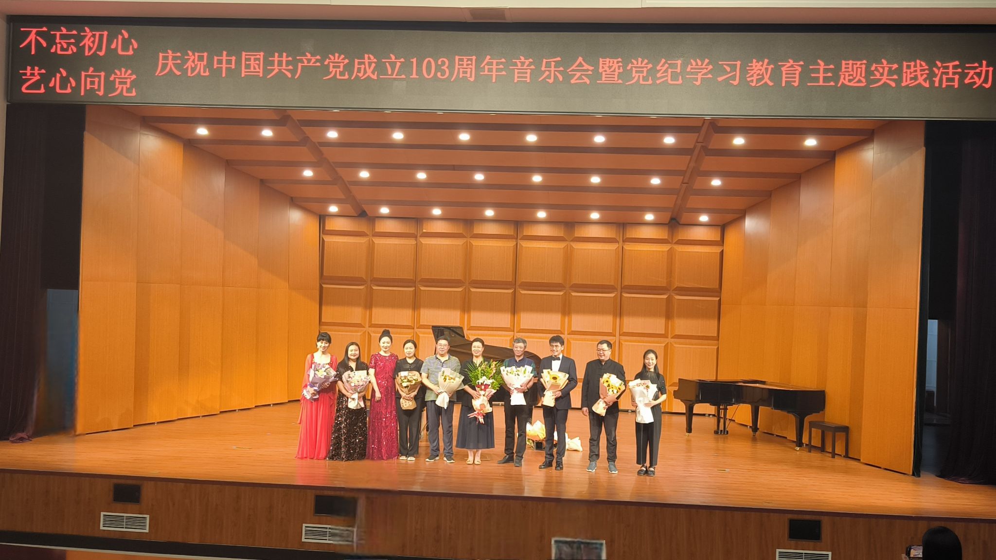 7月10日,“不忘初心 艺心向党”庆祝中国共产党成立103周年音乐会暨党纪学习教育主题实践活动在汉卿会堂蔡冠深报告厅举行,师生近500人现场观演。活动由艺术学院和艺术学院音乐系党支部主办。