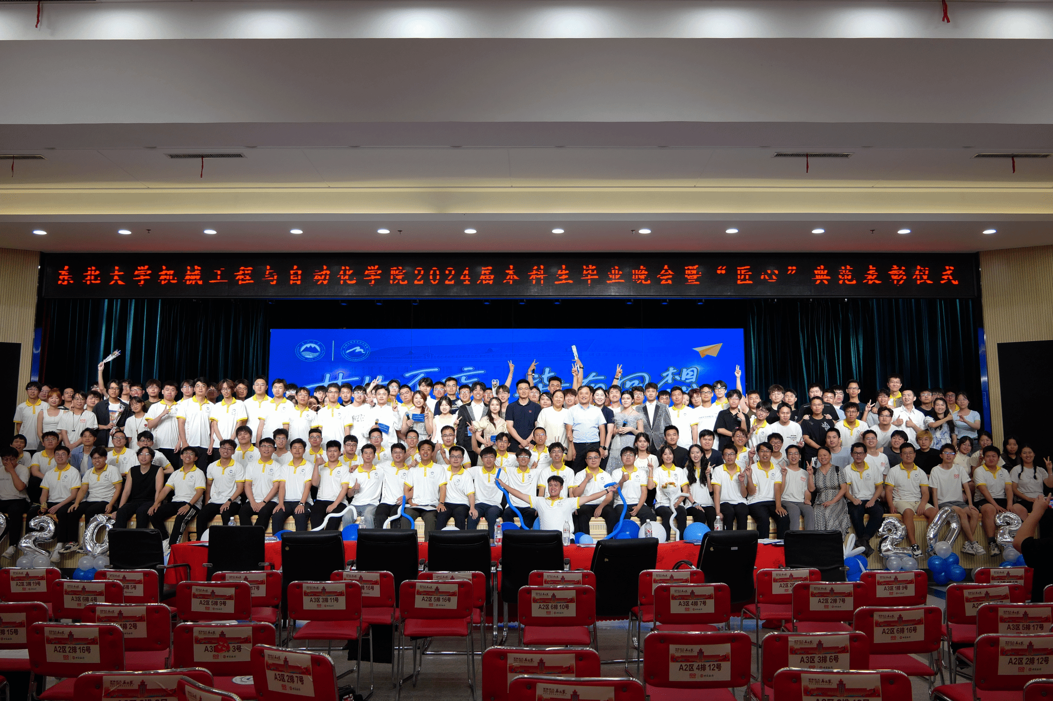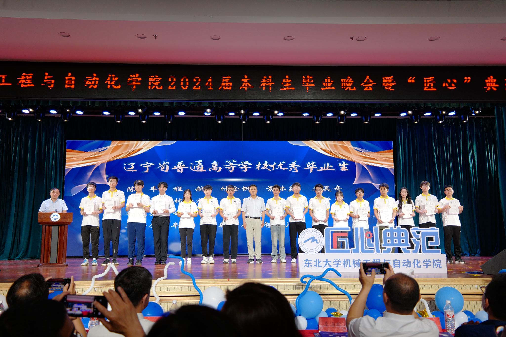 近日,机械工程与自动化学院“廿廿不忘,毕有回想”2024届本科生毕业晚会暨“匠心”典范表彰仪式在大学生活动中心多功能厅举行。创新创业学院常务副院长李鹤,学生指导服务中心主任刘云飞,学生工作处副处长徐长文,校团委副书记郑兴燕,机械工程与自动化学院党委书记李海雄、执行院长于天彪,学院党委副书记、副院长[兼]孙坤,学院获奖教师和班导师代表,辅导员以及2024届毕业生参加晚会。