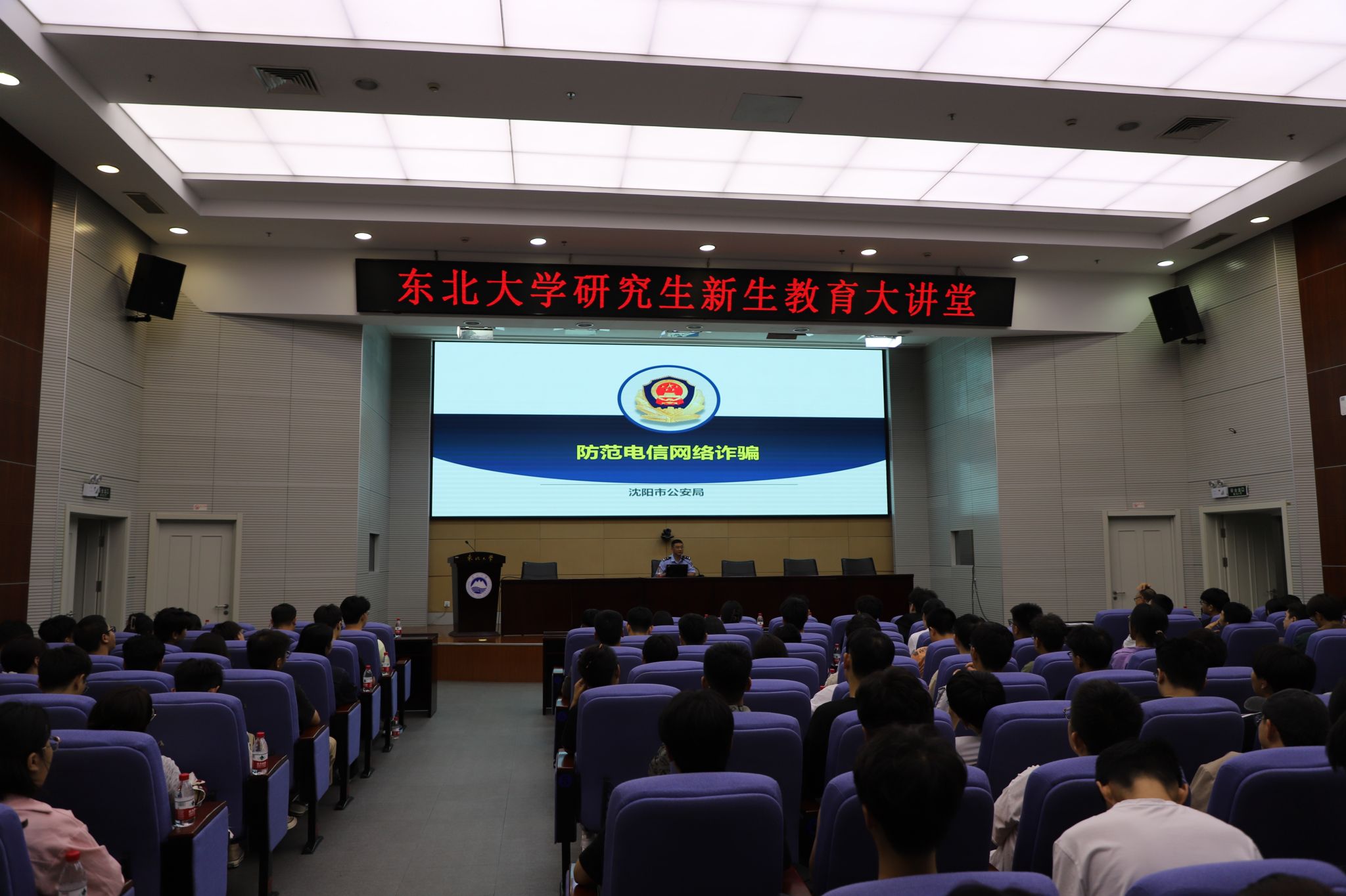 沈阳市公安局王峰警官以“防范电信网络诈骗”为题作专题报告,围绕大学生常见的电信诈骗案例,从电影《孤注一掷》和“缅北电诈”入手,介绍了电信网络诈骗的危害性、电信诈骗手段类型、受骗者心理动因、如何增强防骗意识等内容。