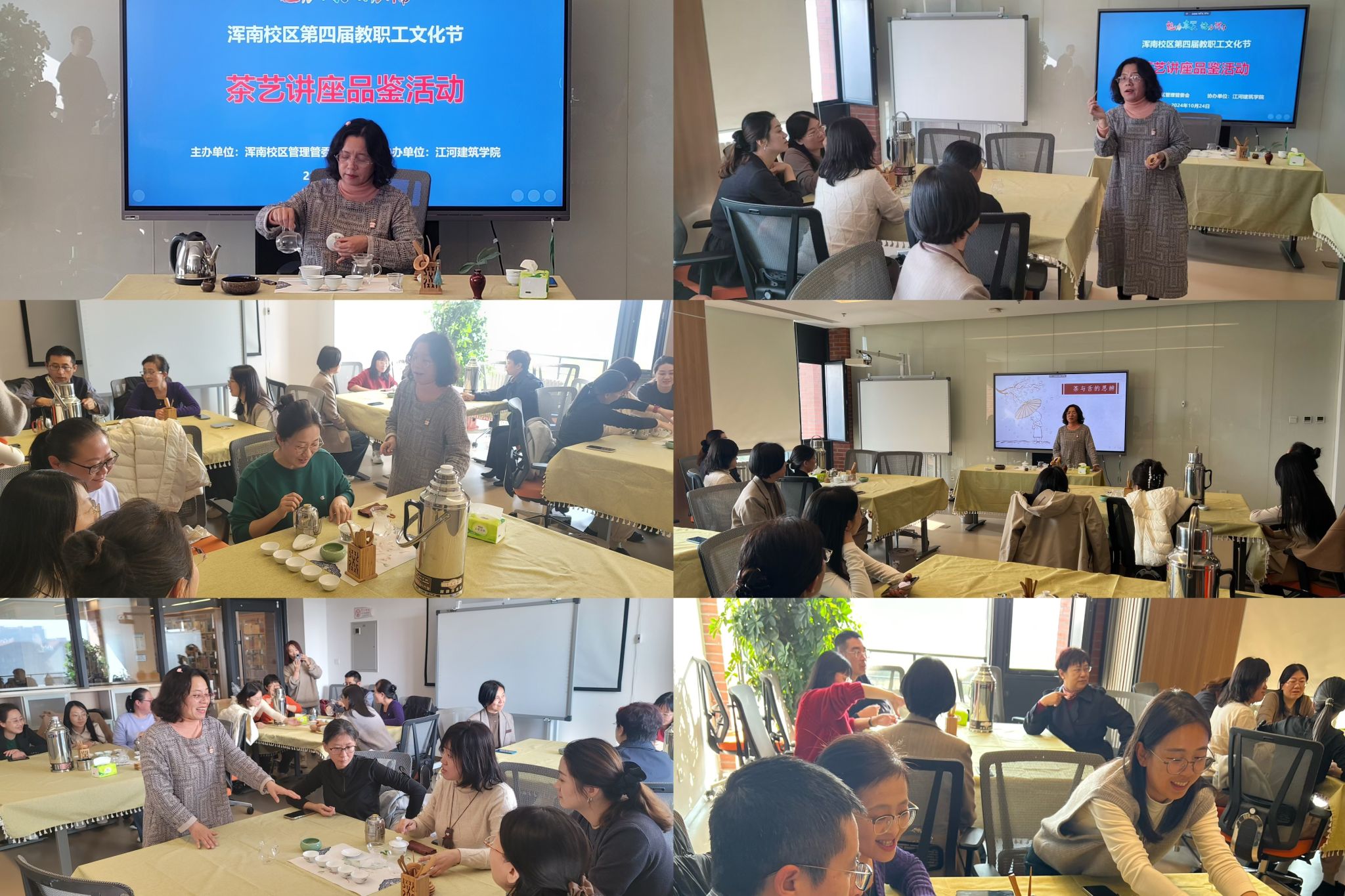 10月24日中午,“魅力太阳成集团tyc33455·活力浑南”浑南校区第四届教职工文化节之茶艺讲座品鉴活动在图书馆B506举行,活动由浑南校区管理委员会主办,江河建筑学院协办。