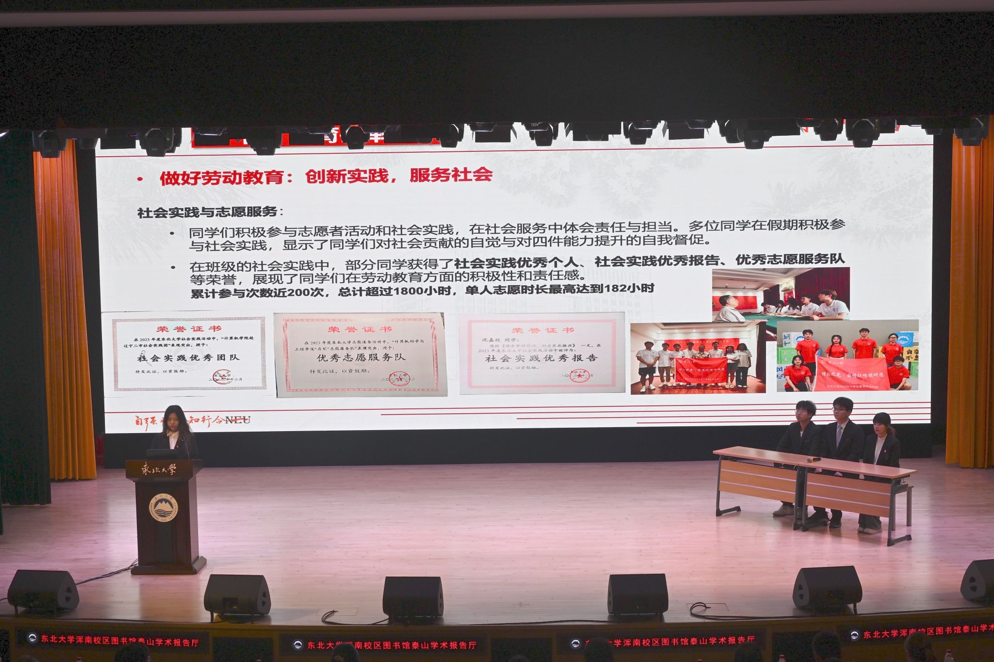 各参评班级答辩人员从班集体基本情况、党建引领、优良学风、五育并举和特色展示五部分对班级进行了介绍,并重点展示了班级建设的特色项目、亮点做法及品牌活动。评委结合各班答辩内容提出了针对性的意见建议。