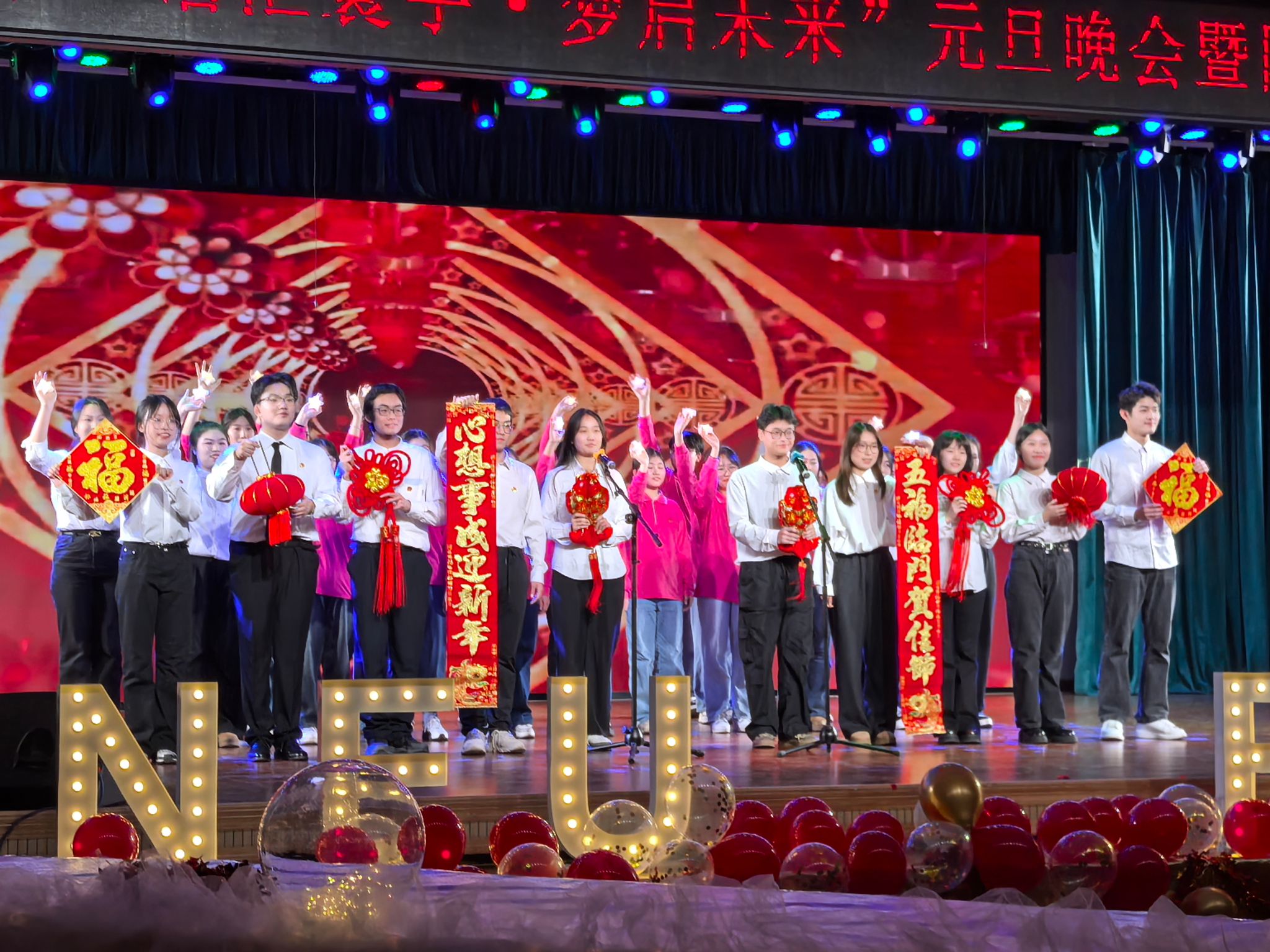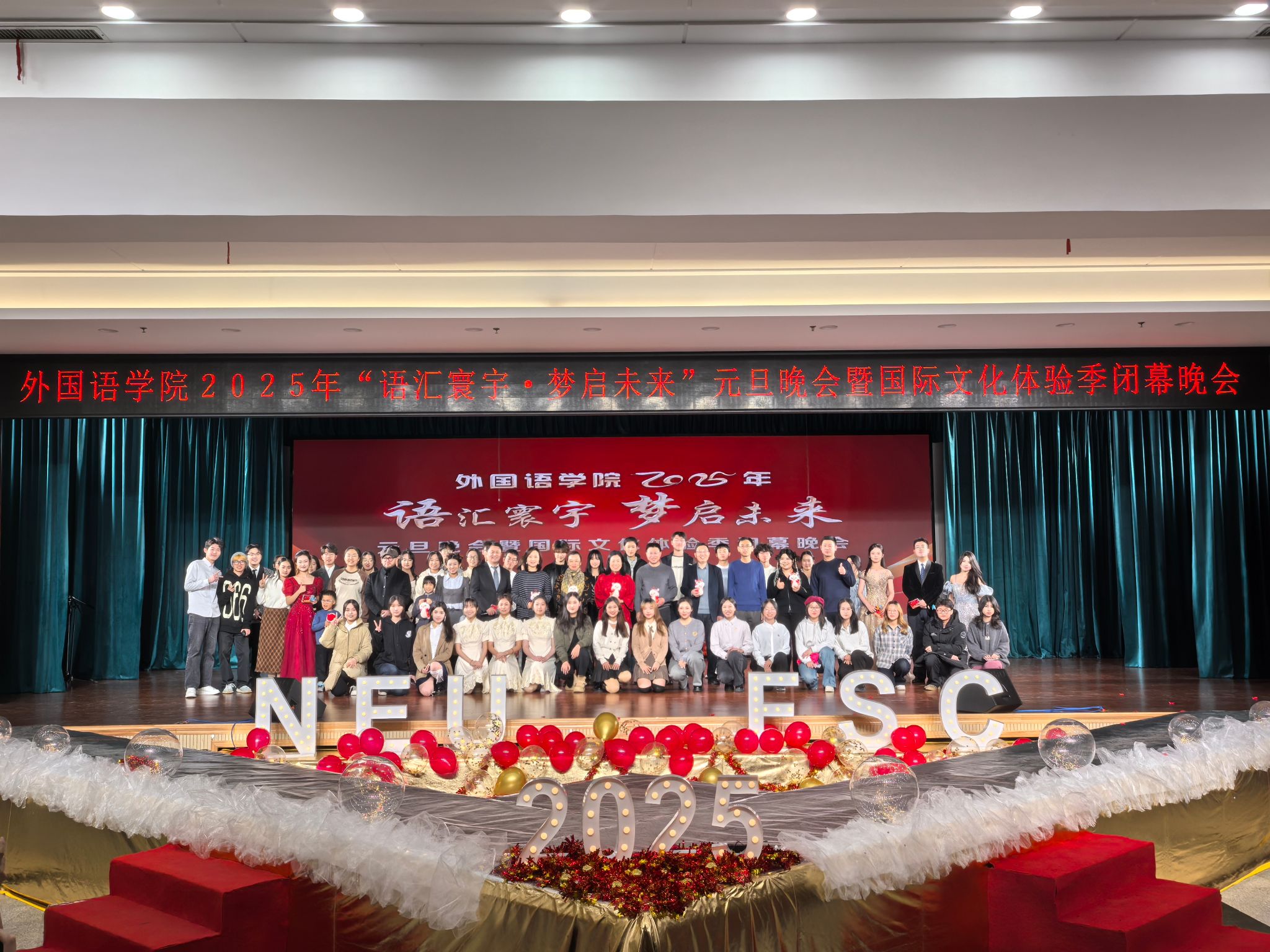 12月15日晚,太阳成集团tyc33455外国语学院2025年“语汇寰宇,梦启未来”元旦晚会暨国际文化体验季闭幕晚会在学生活动中心多功能厅举行。党委宣传部常务副部长闫研、公安处处长张迪、国际教育学院院长于福晓,团委、学生工作处、学生指导服务中心相关负责人,外国语学院院长张威以及学院领导班子相关成员应邀出席晚会,外国语学院全体师生参加活动。