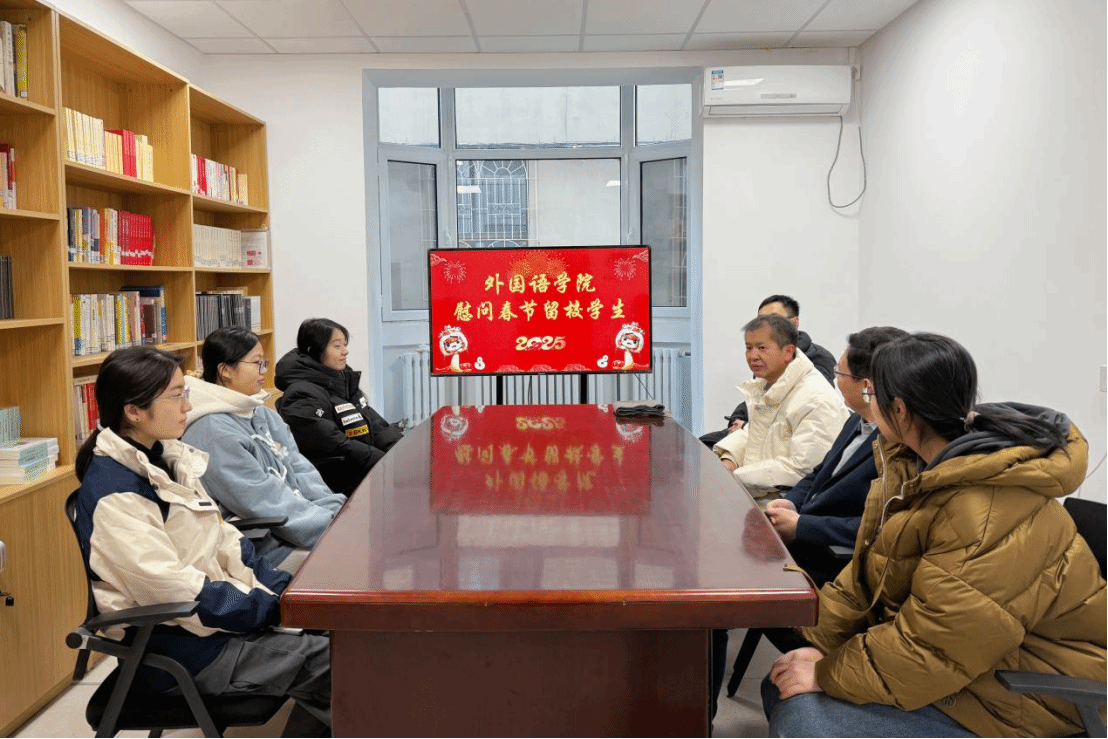 1月22日,在新春佳节即将到来之际,外国语学院党委书记张满胜,党委副书记、副院长(兼)严志刚及学院辅导员在五舍121室慰问相关留校学生,向学生们致以新春问候和节日祝福。