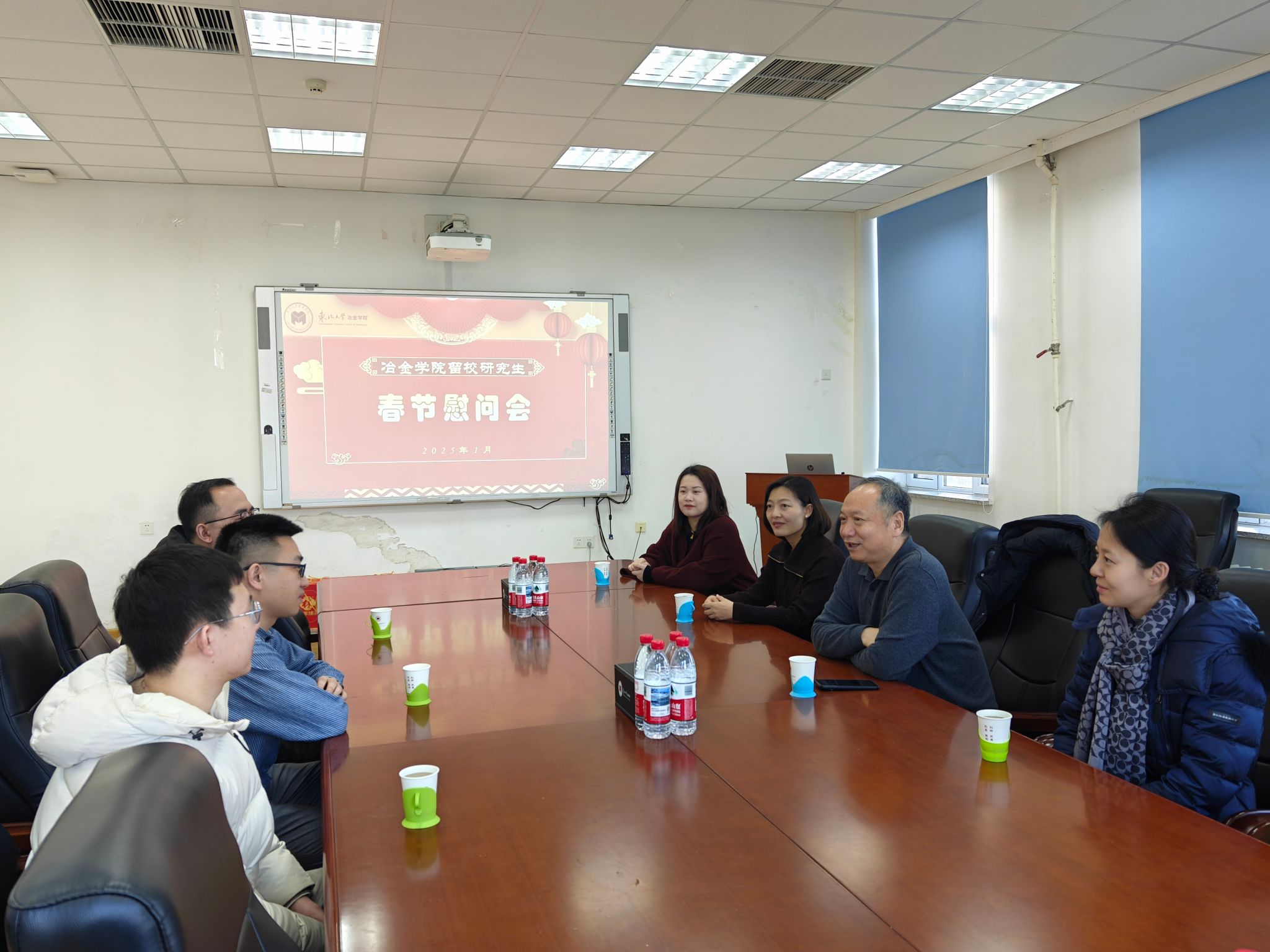 1月25日上午,新春佳节即将到来之际,冶金学院党委书记张耀伟,党委副书记、副院长(兼)赵丽娜,学生工作办公室及学院办公室相关工作人员在冶金学馆311B室与留校研究生齐迎新春,共话团圆。