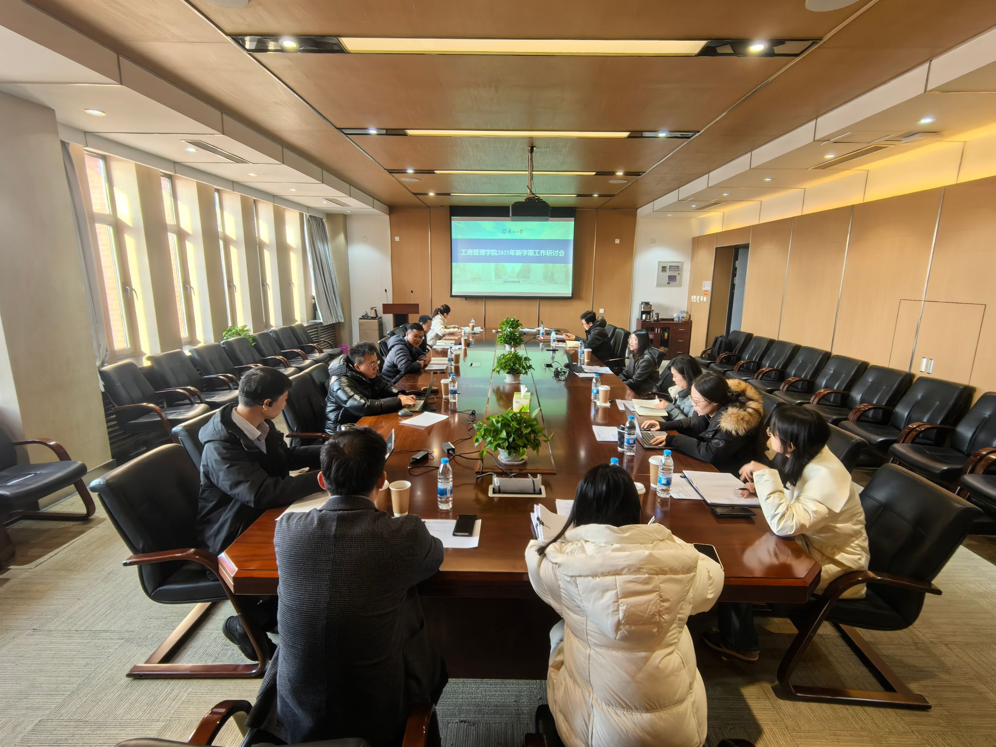 2月25日,工商管理学院召开2025年新学期工作研讨会。学院领导班子成员及各科室负责人参加会议,会议由学院院长蒋忠中主持。