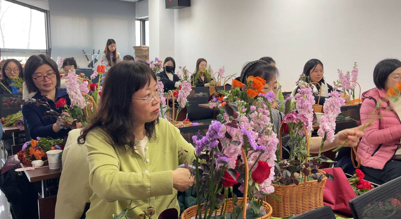 在“三八”国际劳动妇女节即将来临之际,3月6日,计算机学院开展以“花漾女神 璀璨芳华”为主题的第四届花艺沙龙活动。学院女教职工齐聚浑南校区信息学馆B328室,共同欢庆节日。学院副院长高鑫,学院党委副书记、副院长(兼)梁媛出席活动。