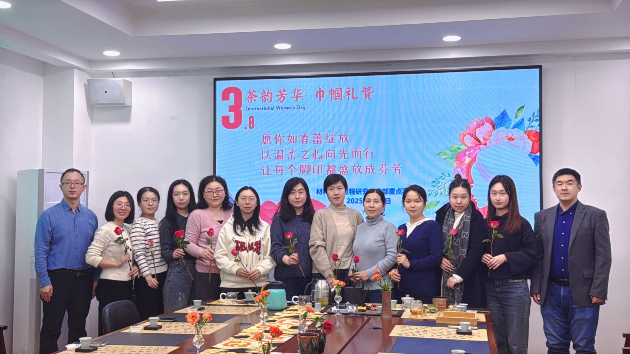 实验室主任李国建代表实验室领导班子向实验室全体女性教职工送上节日的祝福。李国建指出,实验室的女性教职工凭借严谨的治学态度和坚韧不拔的毅力,在教学科研的广阔天地中勇攀高峰,为实验室的发展贡献着不可或缺的力量,用丰硕的教学科研成果诠释着新时代女性的卓越风采。李国建希望,实验室女性教职工能够如茶般清雅坚韧,在科研创新与生活美学的交融中绽放更美的芳华,继续为实验室发展添砖加瓦。