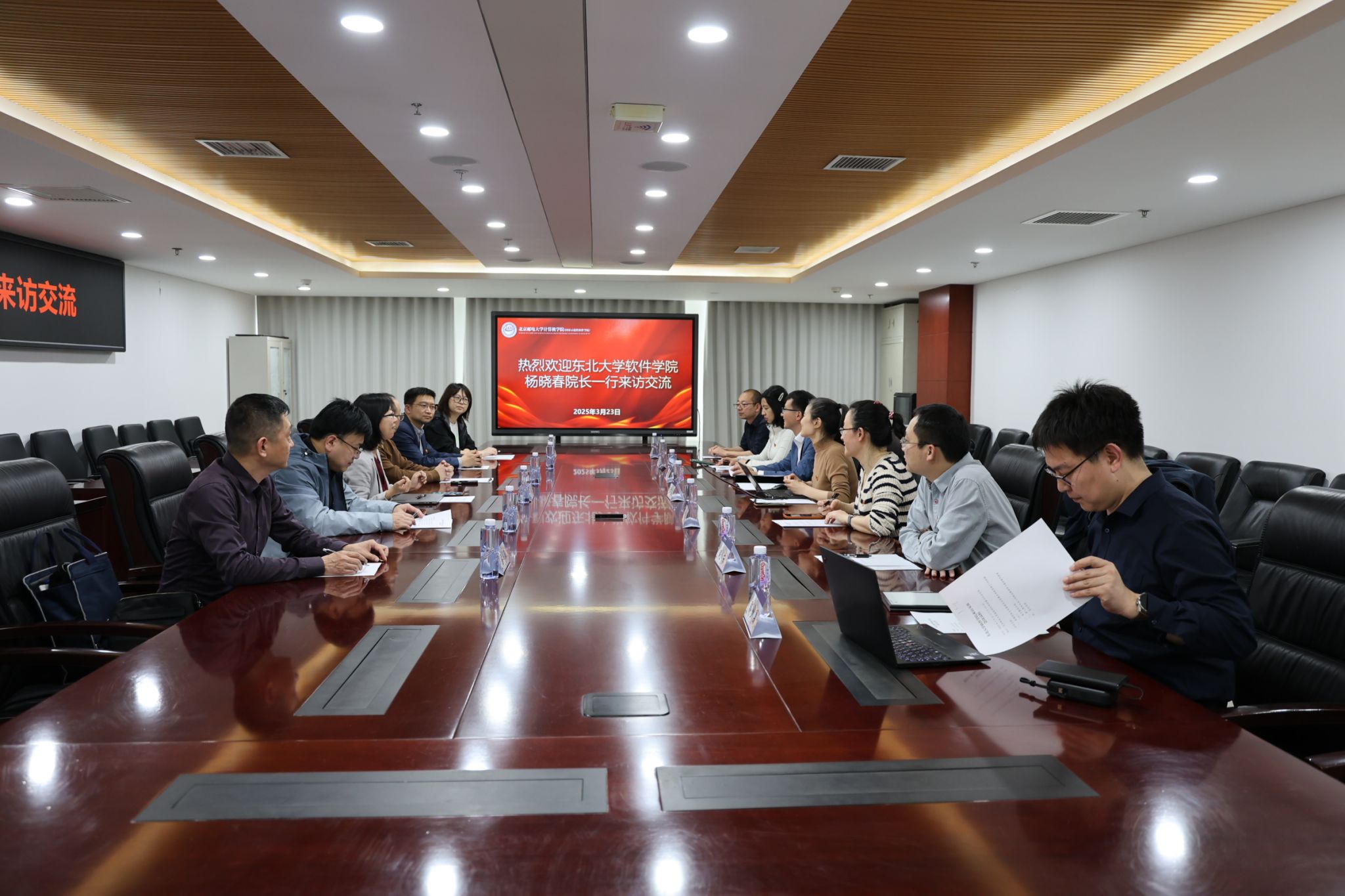 3月23日下午,软件学院院长杨晓春带队前往北京邮电大学开展调研交流。北京邮电大学计算机学院党委书记张笑燕,党委副书记、计算机学院(国家示范性软件学院)院长王尚广,党委副书记牛琨、张艺,以及计算机学院(国家示范性软件学院)副院长赵东、张海旸、郭少勇参与座谈交流。