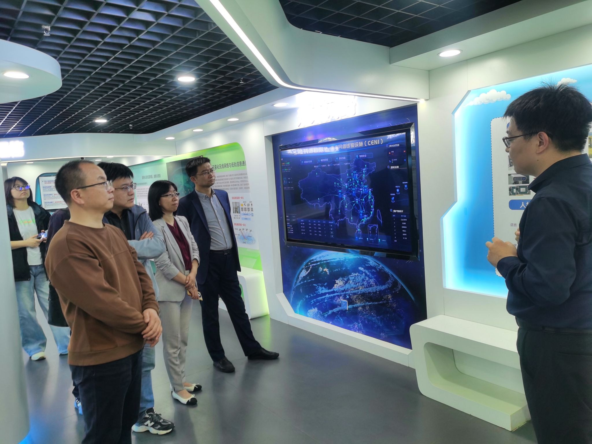 座谈前,杨晓春一行参观了北京邮电大学的网络与交换技术全国重点实验室展厅,直观感受到北京邮电大学在相关领域的前沿技术与研究成果。