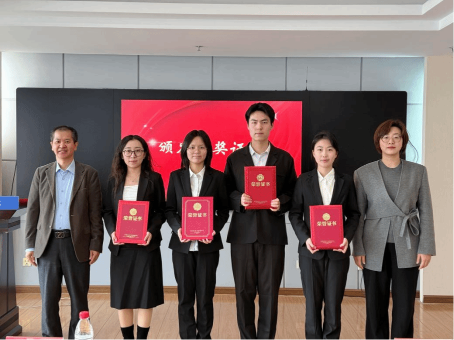 会上,严志刚宣读了获奖名单。刁彤、张满胜、展成、严志刚共同为获奖学生颁奖。