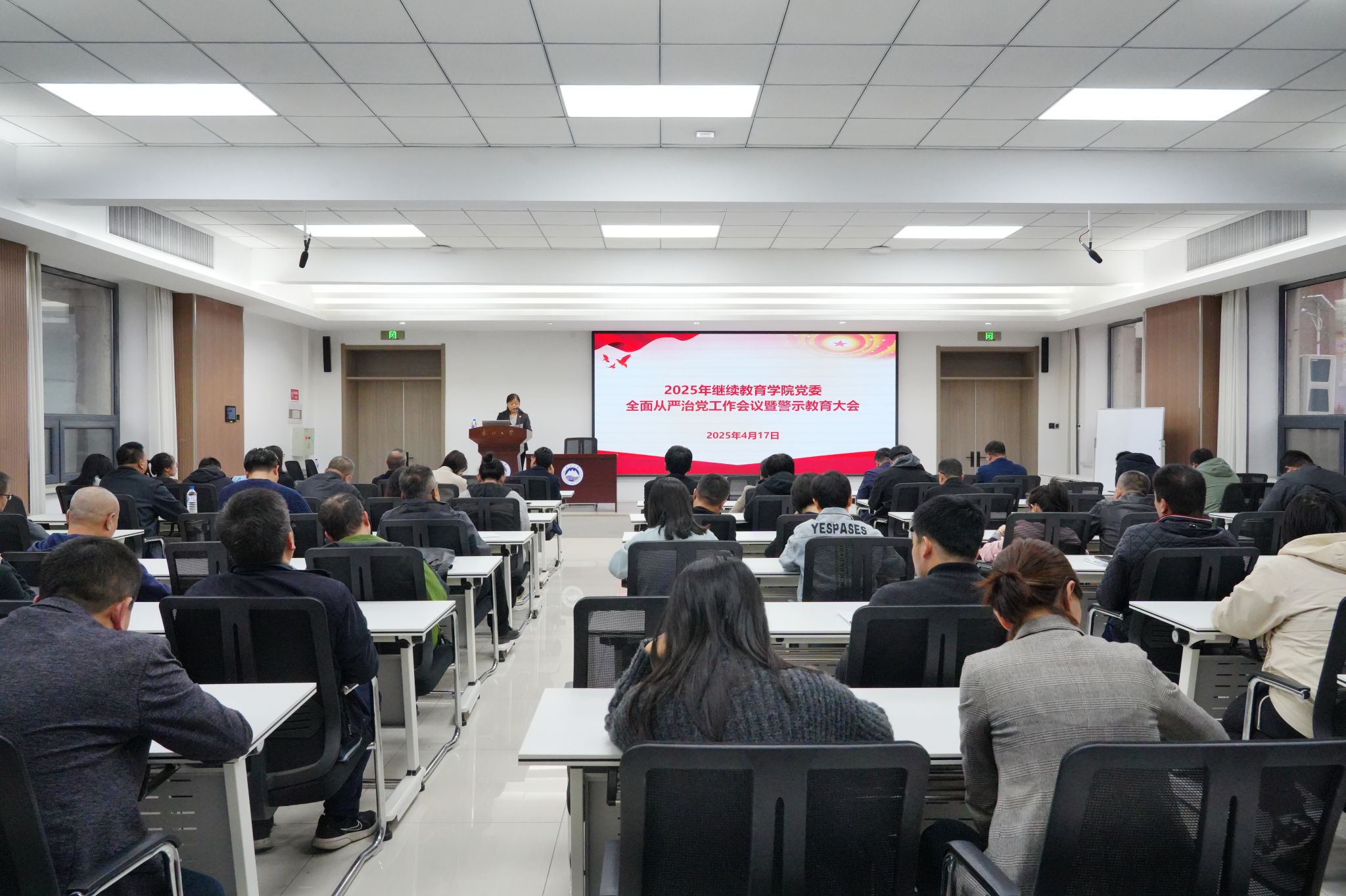 4月17日,继续教育学院党委在沈河校区教学一馆101室召开2025年全面从严治党工作会议暨警示教育大会,继续教育学院和沈河校区管委会全体职工参加会议。会议由学院党委副书记、副院长(兼)王业主持。