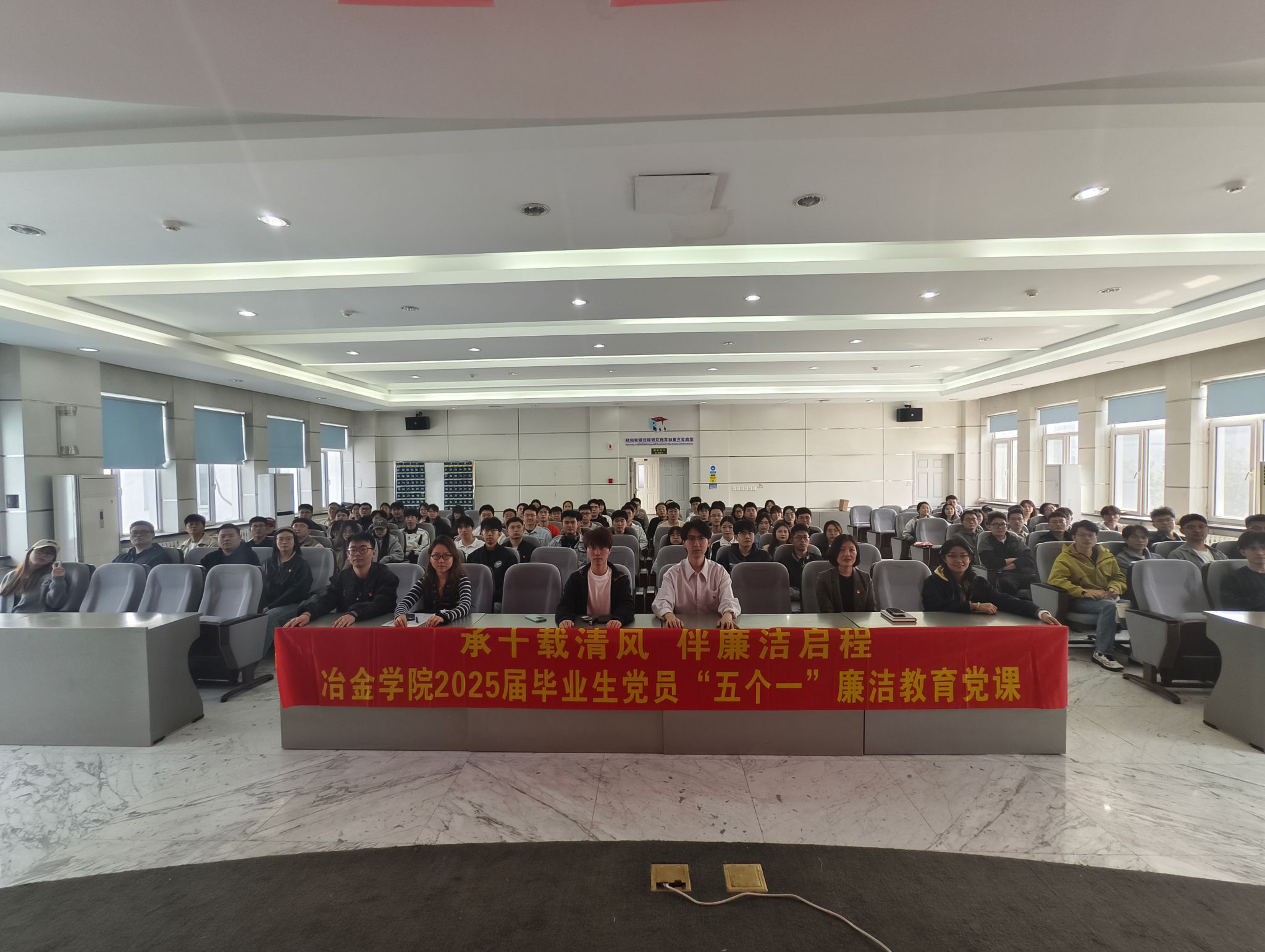 5月6日,冶金学院设计开展了2025届毕业生党员“五个一”廉洁教育党课,扎实落实深入贯彻中央八项规定精神学习教育。