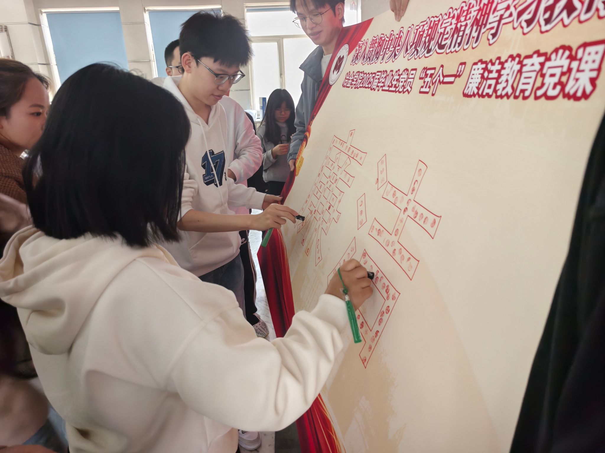 毕业生党员集中观看了警示专题片《反腐为了人民》第四集《以案促改促治》,重温入党誓词,并用刻有每个人名字的竹节印章填满“廉洁”二字,郑重做出廉洁承诺。毕业生党员还前往“廉心雅苑”大东区廉洁文化互动体验馆参观见学,沉浸式学习了《中华优秀传统廉洁文化展》等展览内容。