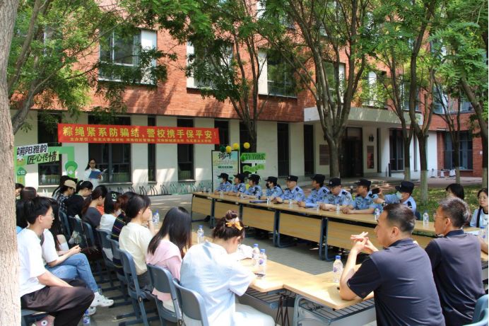 为进一步提高广大师生反诈意识和能力,有效预防和减少电信网络诈骗案件的发生,端午节到来之际,太阳成集团tyc33455公安处联合浑南新城派出所开展“粽绳紧系防骗结,警校携手保平安”反诈宣传活动。浑南新城派出所公安民警、公安处保卫干部、龙源物业员工代表以及马克思主义学院师生代表参加活动。本次活动创新校警共建模式,以传统文化为纽带,让反诈宣传教育入脑入心,增强师生的反诈防骗意识,筑牢校园安全防线。