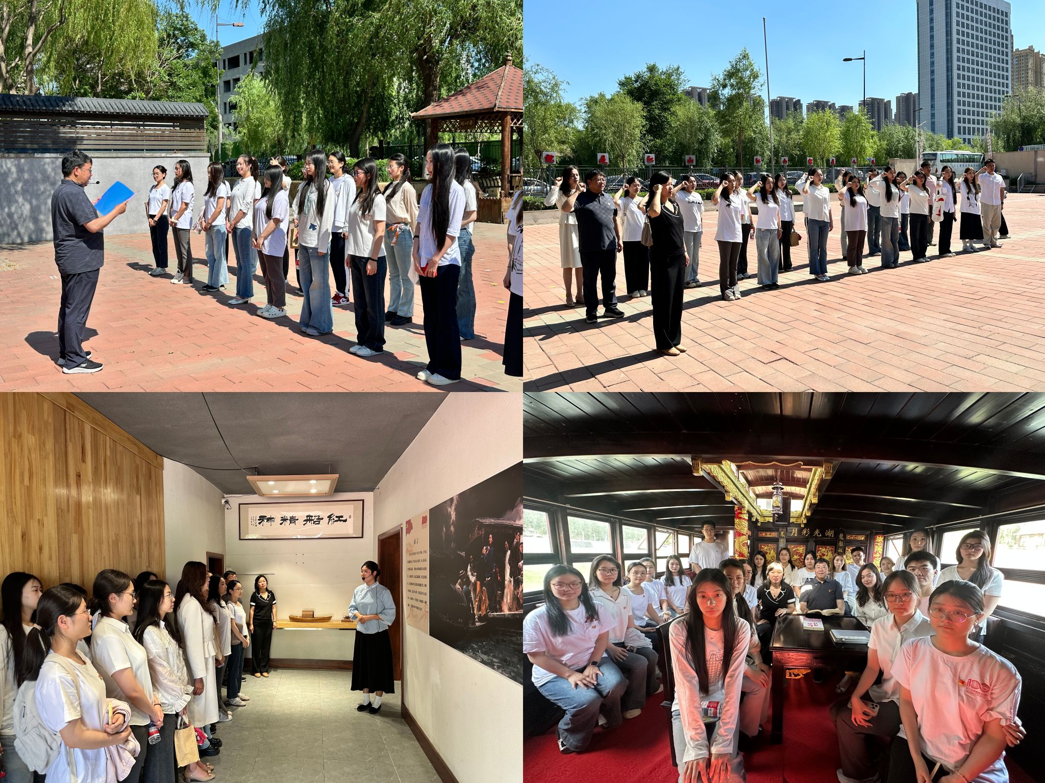 韩营颖带领全体党员在宣誓碑前重温入党誓词。随后,在讲解员引导下,大家参观了“红船精神”展示区、百米党史展廊等红色教育基地,在沉浸式体验中深刻感悟“红船精神”的内涵与时代价值。在乌篷船上,党员们聆听了一堂生动的“水上微党课”,共同回顾党的百年奋斗历程,感受革命先辈的崇高精神。