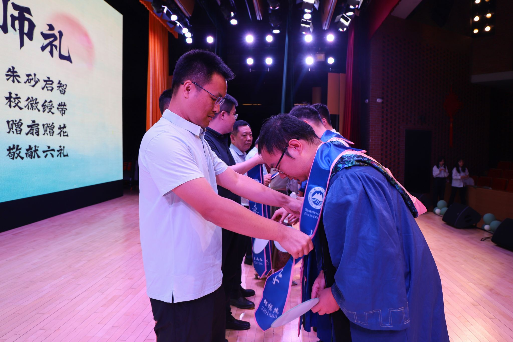 仪式中,传统谢师礼环节庄重呈现,以传统礼仪彰显师德厚重与文化传承。