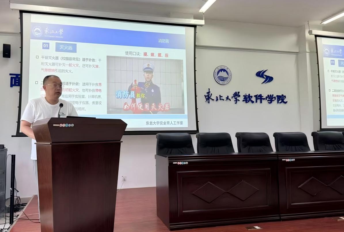 6月24日下午,软件学院在浑南校区信息学馆B520室开展“人人讲安全、个个会应急——查找身边安全隐患”2025年安全生产月消防安全培训。本次培训面向学院教职工及学生代表,邀请辽宁省消防救援总队防火高级工程师、辽宁省住建厅消防审核验收专家、沈阳市消防监督专家库专家李伟作为主讲嘉宾,从理论学习和实际操作演练两部分进行专题培训。