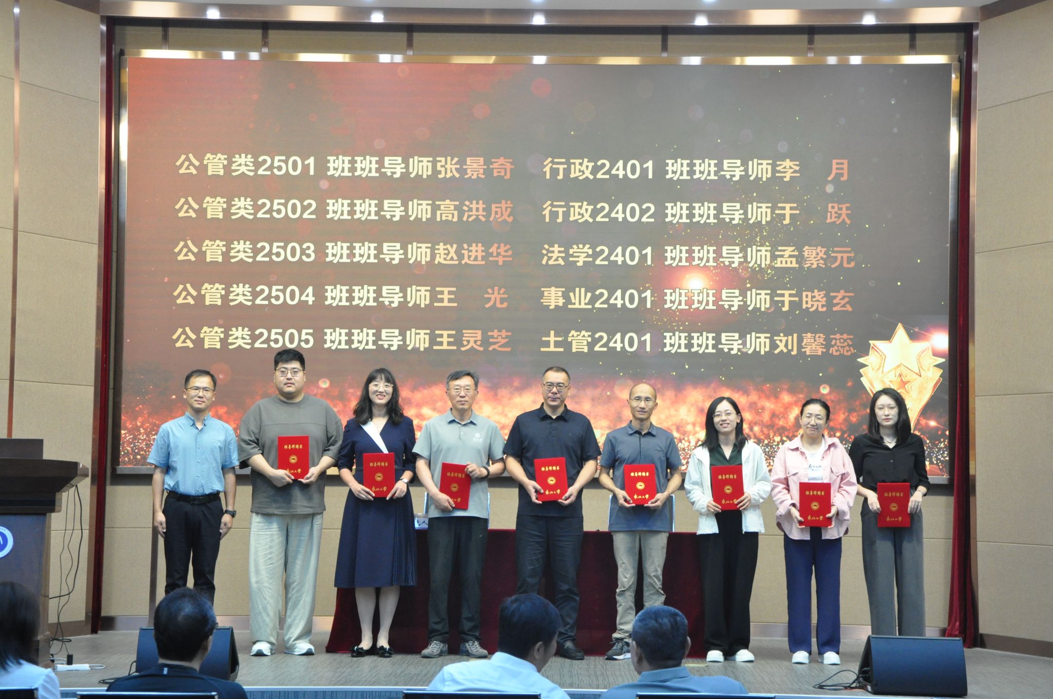 会议举行了班导师聘任仪式。学院党委副书记、纪委书记孙宏伟宣读聘任文件,副院长吕晓为张景奇等10位班导师颁发聘书。