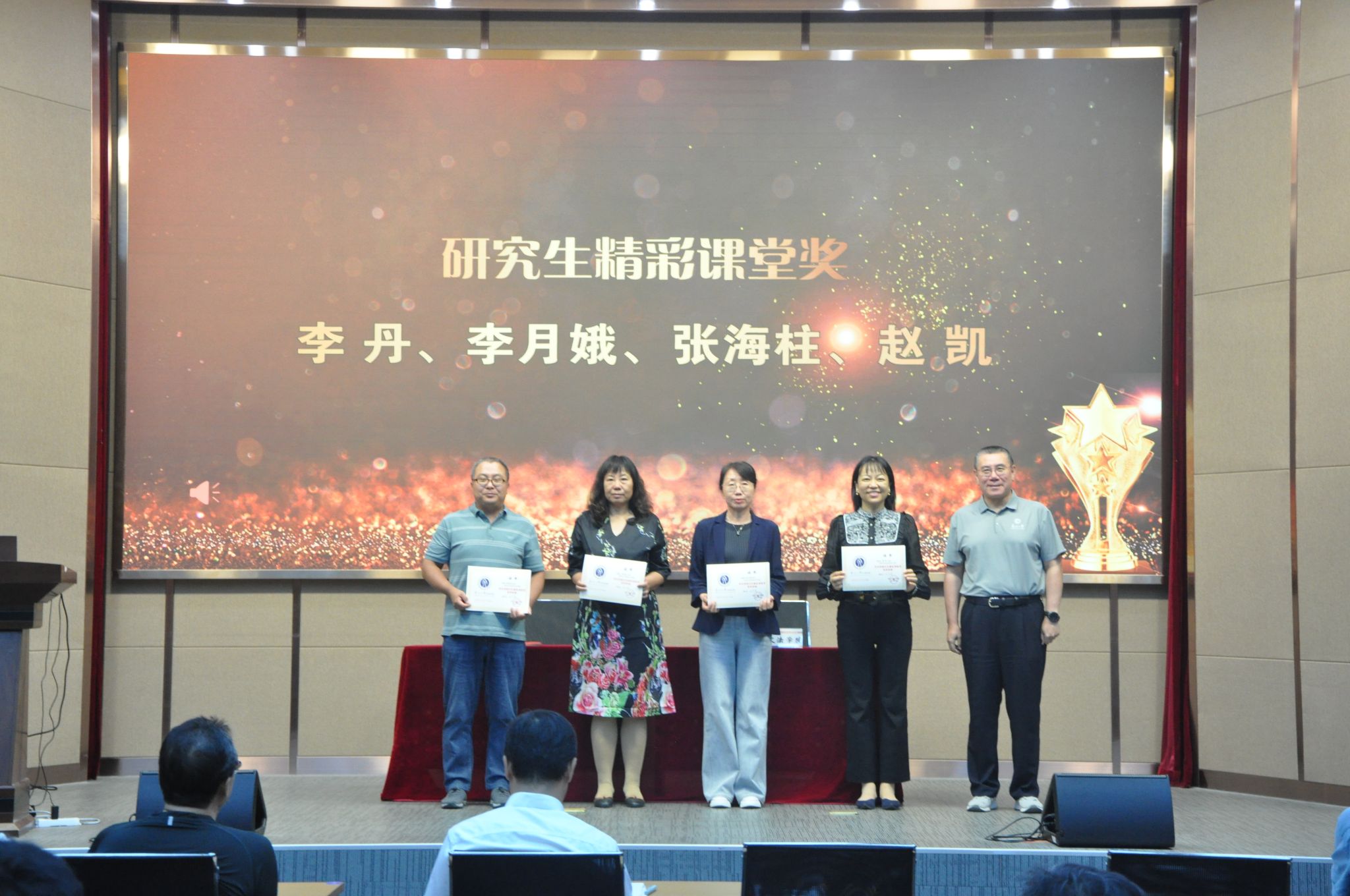 会议首先颁发2025年度学院“精彩课堂奖”,副院长满小欧宣读表彰文件。王玉波、吕晓、佟彤、钱凤魁、高媛五位老师荣获本科生“精彩课堂奖”;李丹、李月娥、张海柱、赵凯四位老师荣获研究生“精彩课堂奖”。院长杜宝贵、学院党委书记隋永强共同为获奖教师颁奖。佟彤老师作为获奖代表发言,感谢学院对青年教师的培养,同时分享了教研相长的心得。