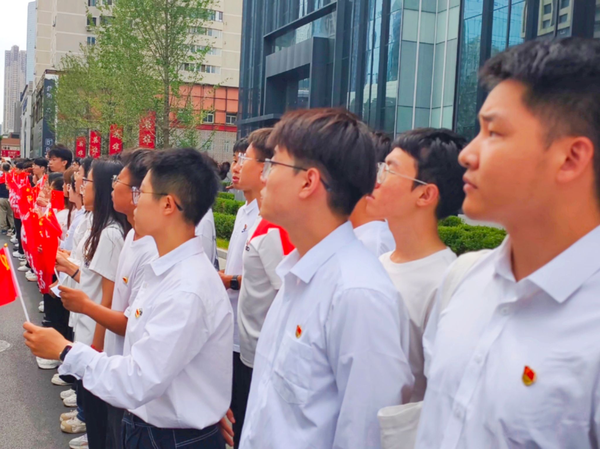 9月12日上午,第十二批在韩中国人民志愿军烈士遗骸迎回仪式在沈阳举行。30位在韩中国人民志愿军烈士英灵及267件遗物,由我空军专机从韩国接回祖国并护送至辽宁沈阳。当载有志愿军烈士遗骸和遗物的车辆缓缓驶过青年大街时,材料科学与工程学院学生队伍在醒目的“山河铭记 英雄回家”红色横幅后排成两列,手持国旗、久久凝视,向英烈们献上最崇高的敬意。