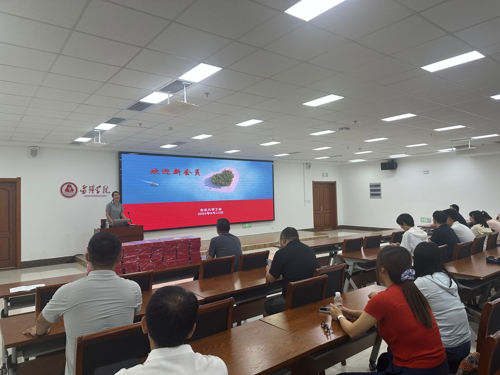 优秀工会干部为新入职教职工颁发了校徽定制纪念品,切实让新入职教职工感受到了满满的诚意和关怀。
