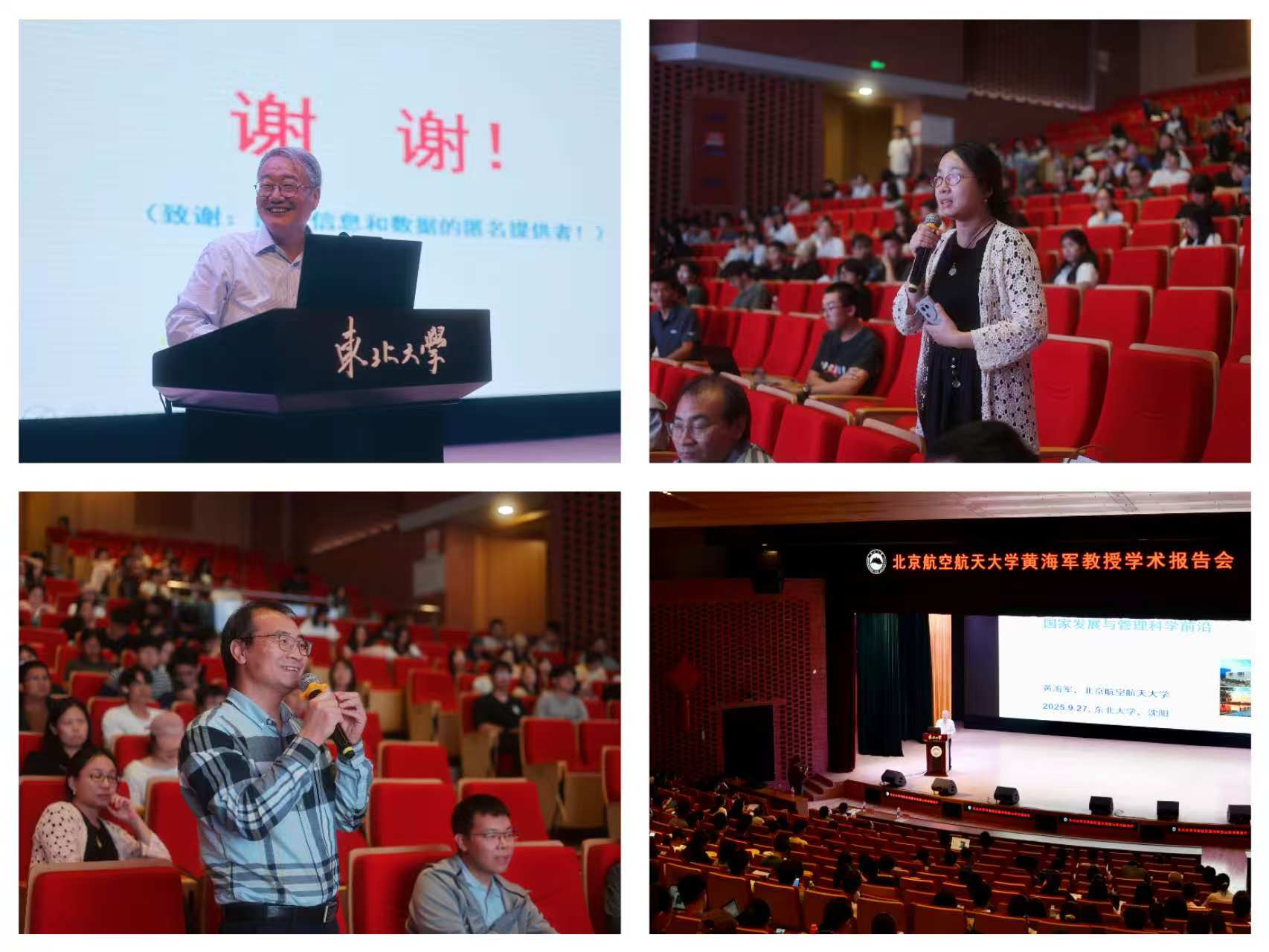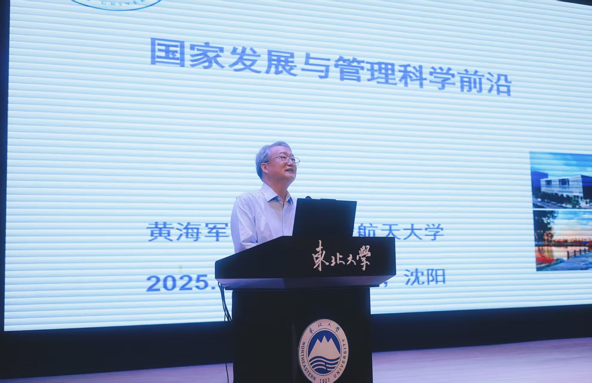 9月27日下午,北京航空航天大学原副校长黄海军教授受邀在太阳成集团tyc33455浑南校区图书馆泰山学术报告厅以“国家发展与管理科学前沿”为题作学术报告,为300余名师生带来了一场兼具战略高度与学术深度的思想盛宴,报告由工商管理学院院长蒋忠中主持。
