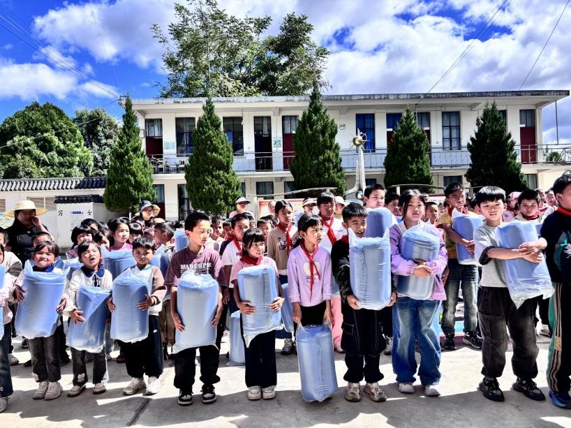 远山环抱中的校园里,新床垫整齐铺陈。这份跨越千里的关爱,不仅改善了乡村学子的住宿条件,更在他们心中播下感恩的种子。