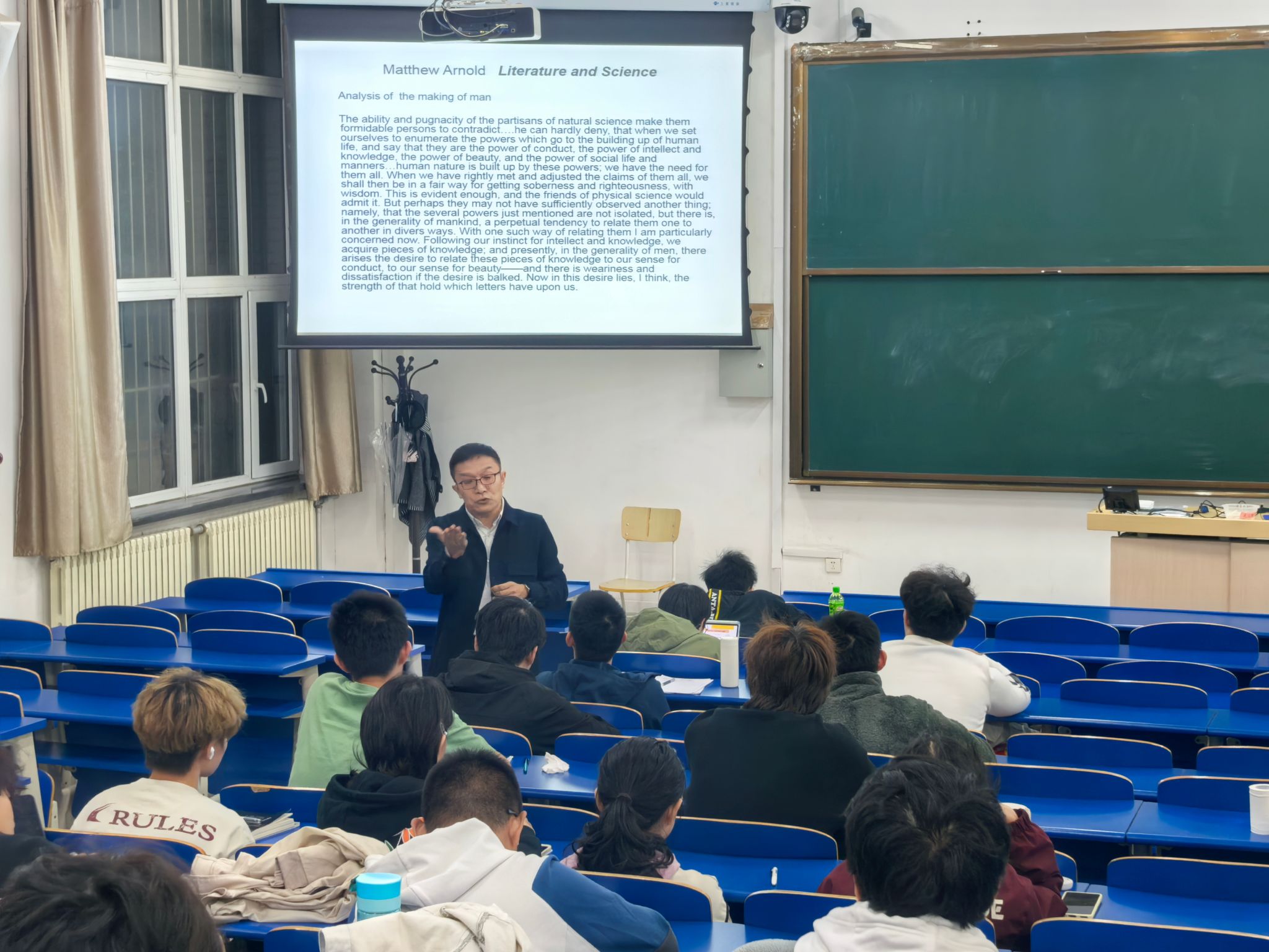 杨林介绍了外国文学作品的译入对中国近现代历史发展的影响,聚焦19世纪末期西方“科学与文化”之争介绍了代表人物托马斯·亨利·赫胥黎与马修·阿诺德等人的学术观点与研究成果,列举经典文学作品案例阐释了文学对人类社会发展和个体生存状态的影响,从文学的视角探讨了对“美”的本质的认识。杨林表示,文学经典中蕴含着行动的力量,为实际生活提供指引,希望同学们能够深入感受文学的魅力,从文学中感悟精神的力量,成长为兼具专业技能与文化素养的高素质人才,在推进中国式现代化的伟大进程中实现自己的价值追求。