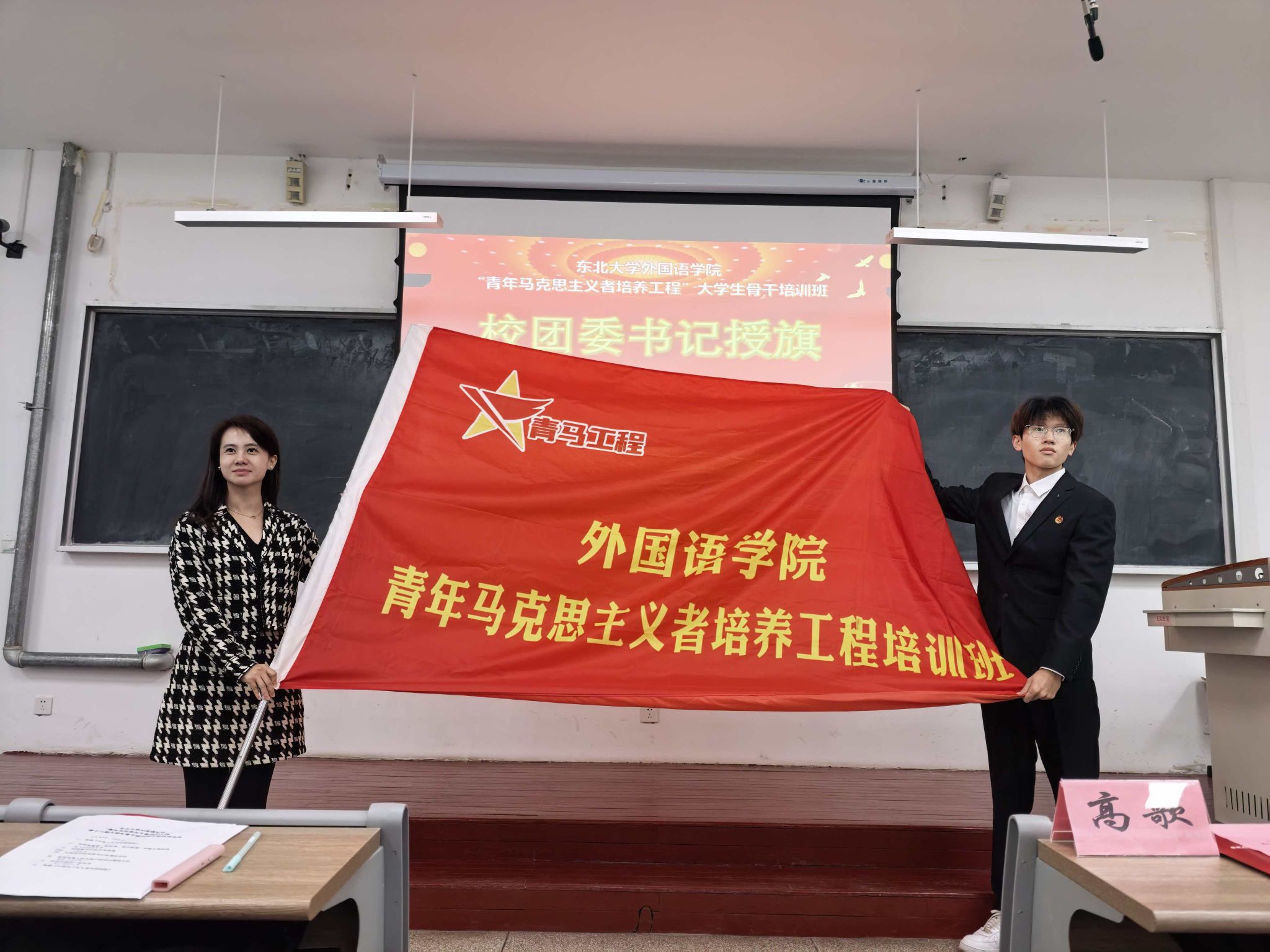 开班仪式在奏唱国歌中开始,学员代表张曼馨、褚伊励娜、胡骏文博、杨金澳深情讲述了马克思主义的光辉历程,展现了新时代青年对马克思主义的坚定信仰和为实现中华民族伟大复兴而奋斗的坚定决心。张忠英为青马培训班授旗。