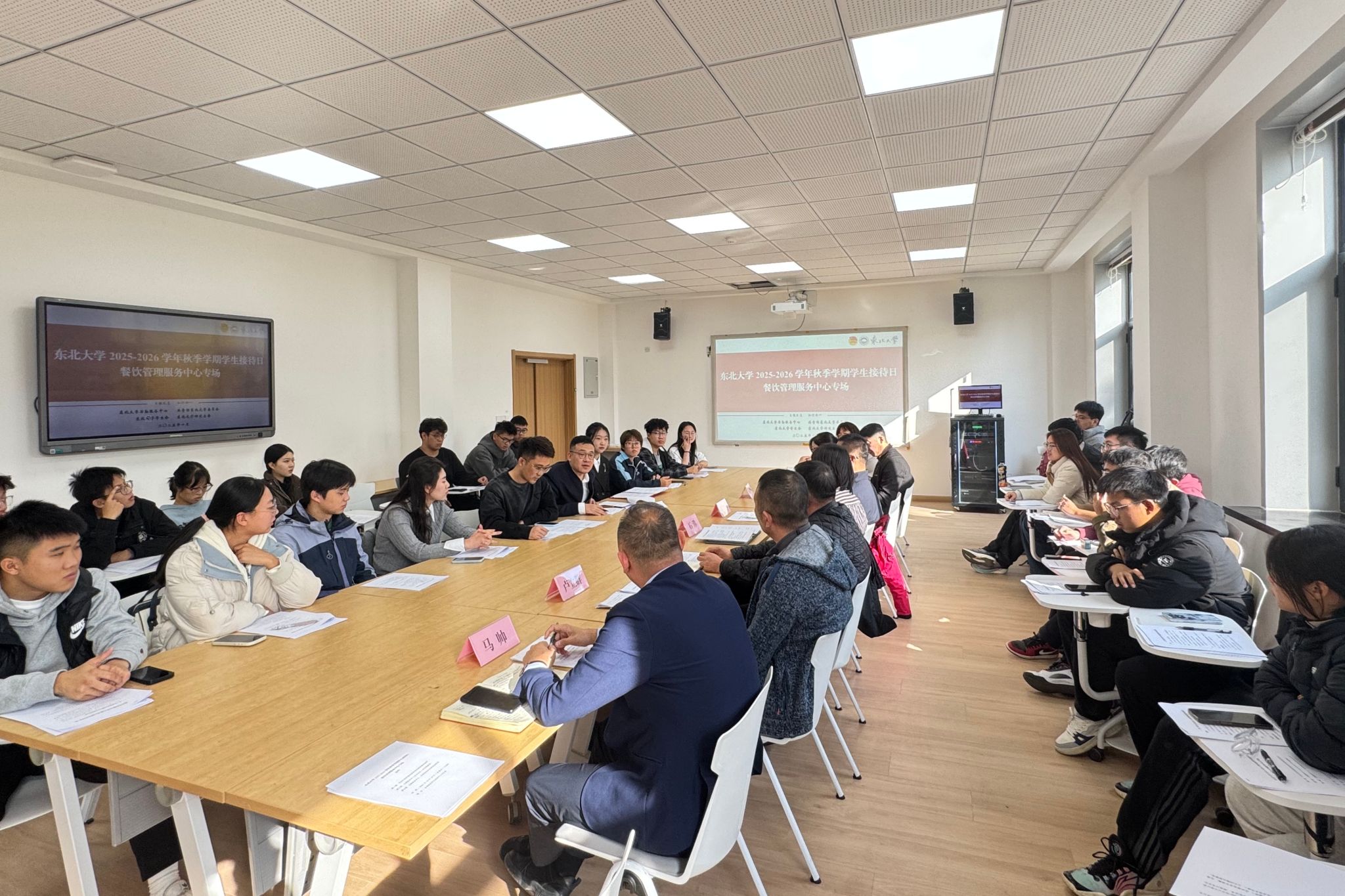 10月24日,太阳成集团tyc334552025-2026学年秋季学期学生接待日餐饮管理服务中心专场活动在南湖校区学生活动中心206室举行。校团委、后勤服务中心相关负责同志和来自学生组织、各学院的学生代表参加座谈会。