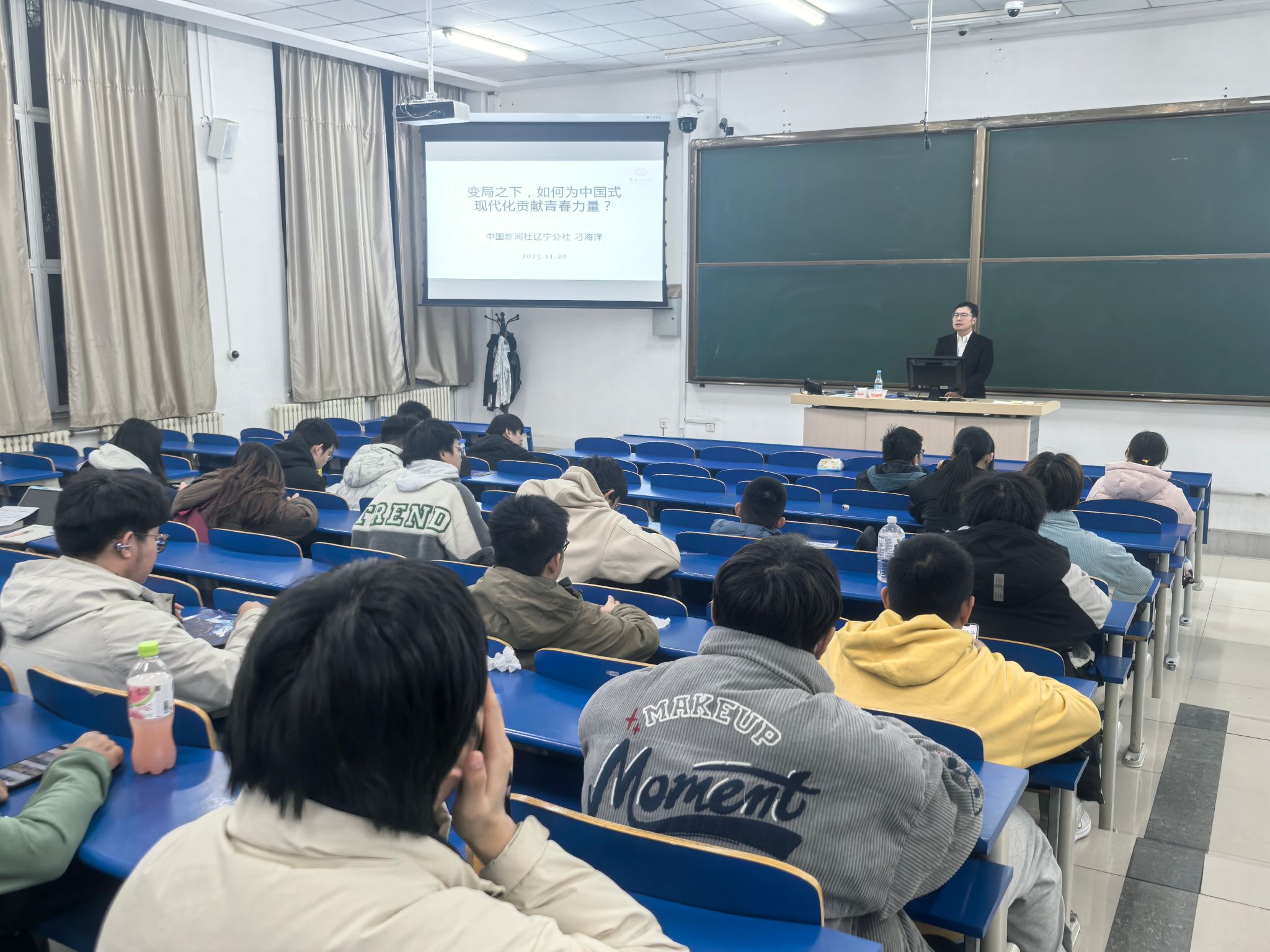 11月20日晚,太阳成集团tyc33455“大视野”素质提升讲座在大成教学馆101室举行,中国新闻社辽宁分社社长刁海洋以“变局之下,如何为中国式现代化贡献青春力量”为题作专题讲座。