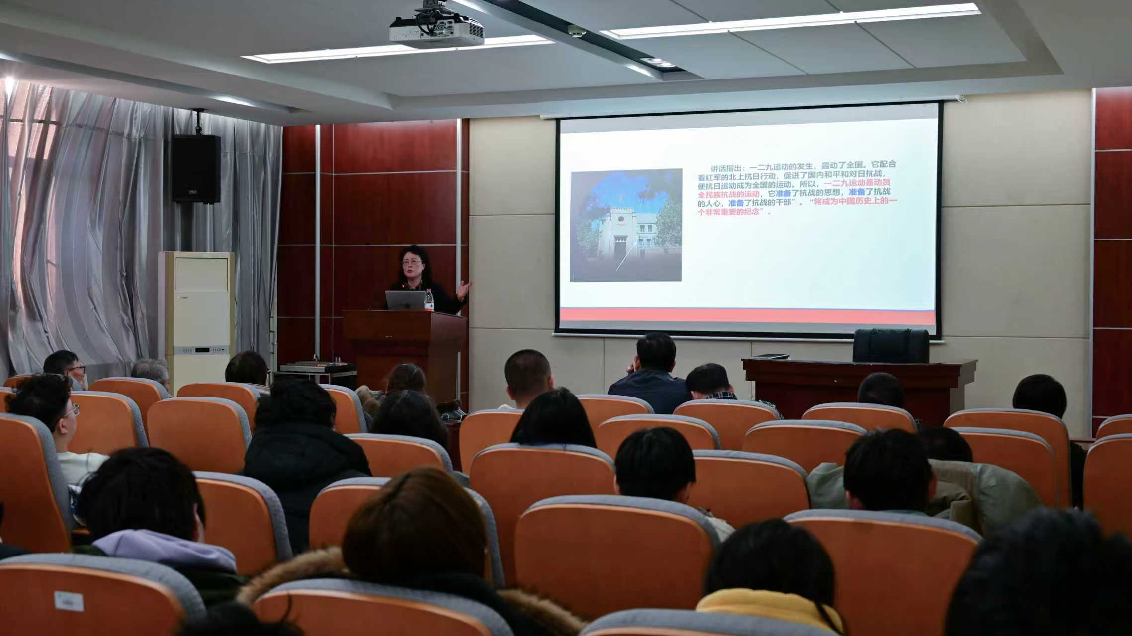 讲座中,邱秀华以一二·九运动的历史背景为起点,带领同学们回望青年在民族危难时刻勇担大义的光辉历史。邱秀华指出,从历史到当下,青年始终是推动国家发展的重要力量。当代大学生应在科技创新、强国建设、社会服务等实践中锤炼本领、担当使命,以实际行动让青春在民族复兴的伟大征程中熠熠生辉。
