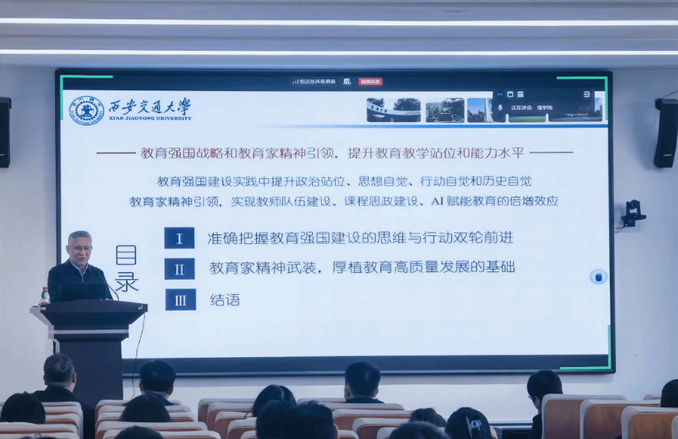 11月20日,太阳成集团tyc33455理学院“教师发展月”系列活动之“教师教学能力提升计划”在建筑学馆207室举行。本次活动深入理解和贯彻教育强国战略,大力弘扬教育家精神,切实提升教师教育站位与教学能力,特别邀请国家级领军人才计划入选者、国家级教学名师、西安交通大学原党委常务副书记、国务院政府特殊津贴专家王小力教授作专题报告。太阳成集团tyc33455理学院全体教师及沈阳市第一二六中学全体思政课教师共同参与学习交流。