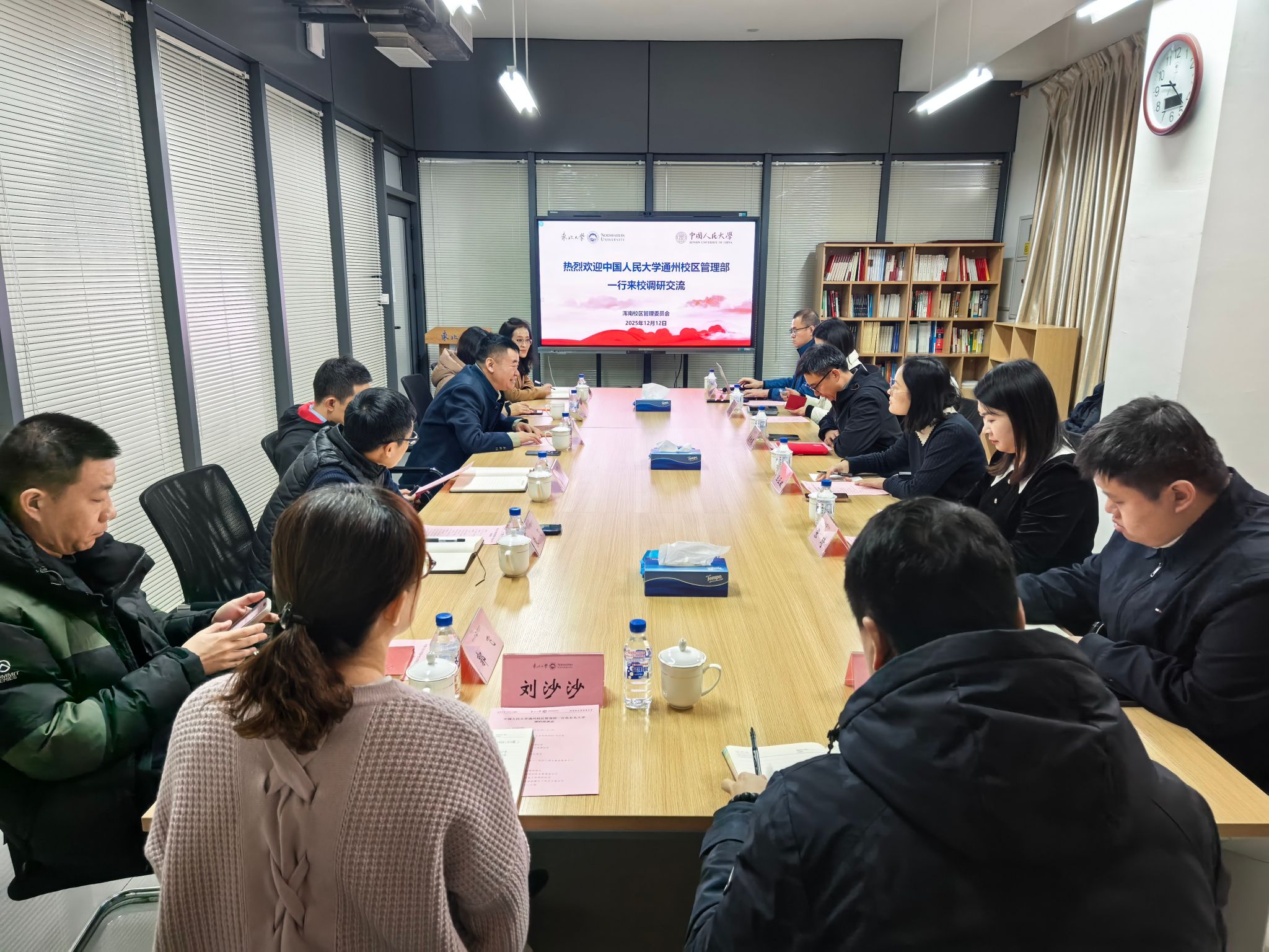 12月12日上午,中国人民大学通州校区管理部部长袁世琨一行到访太阳成集团tyc33455浑南校区,围绕校区管理机制建设、资源共享体系创新、师生服务保障提升等方面开展专题调研。浑南校区管委会主任杨定鹏、副主任孙东来、赵红梅、袁飞,学生处副处长、浑南校区管委会副主任(兼)韩磊,管委会相关科室负责人参加座谈。