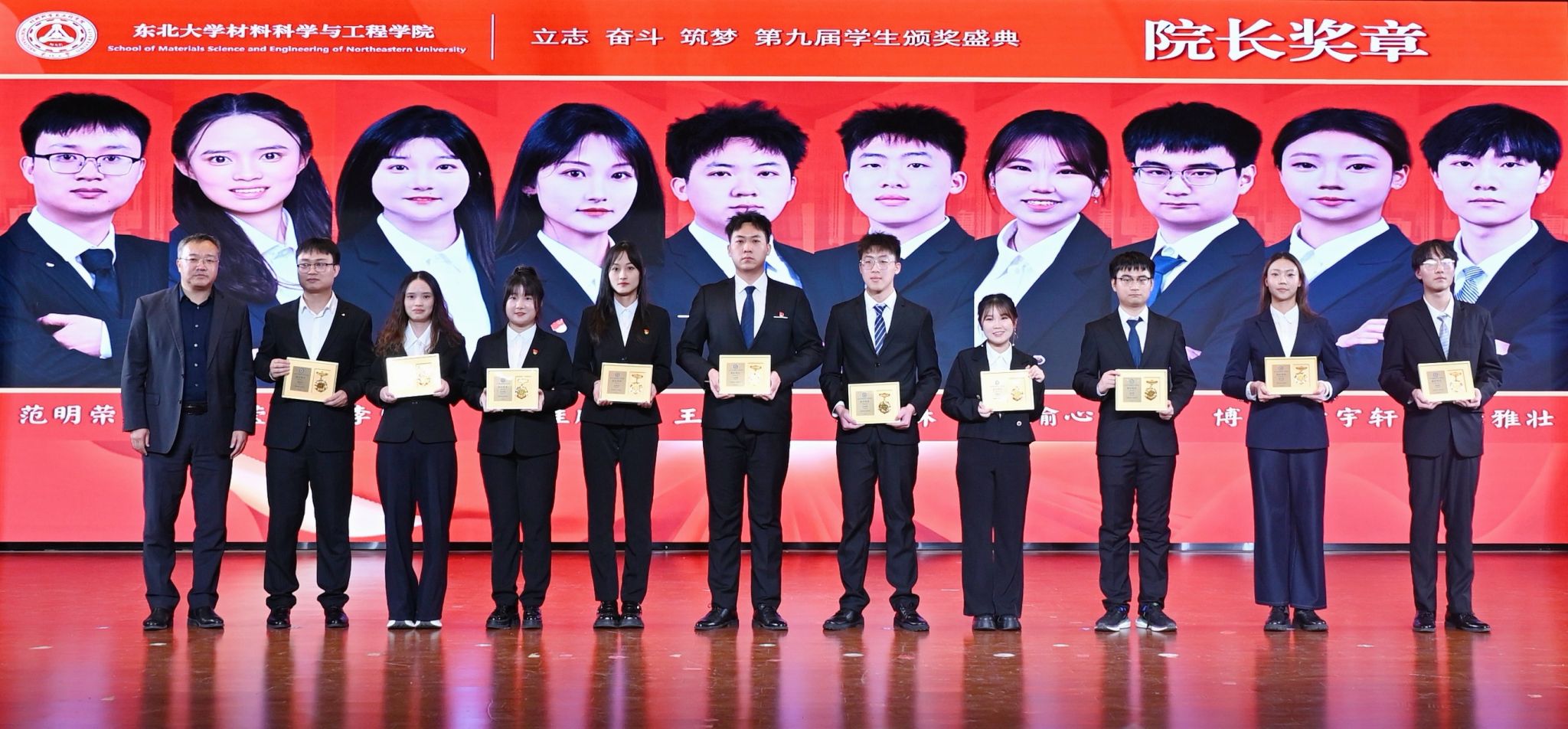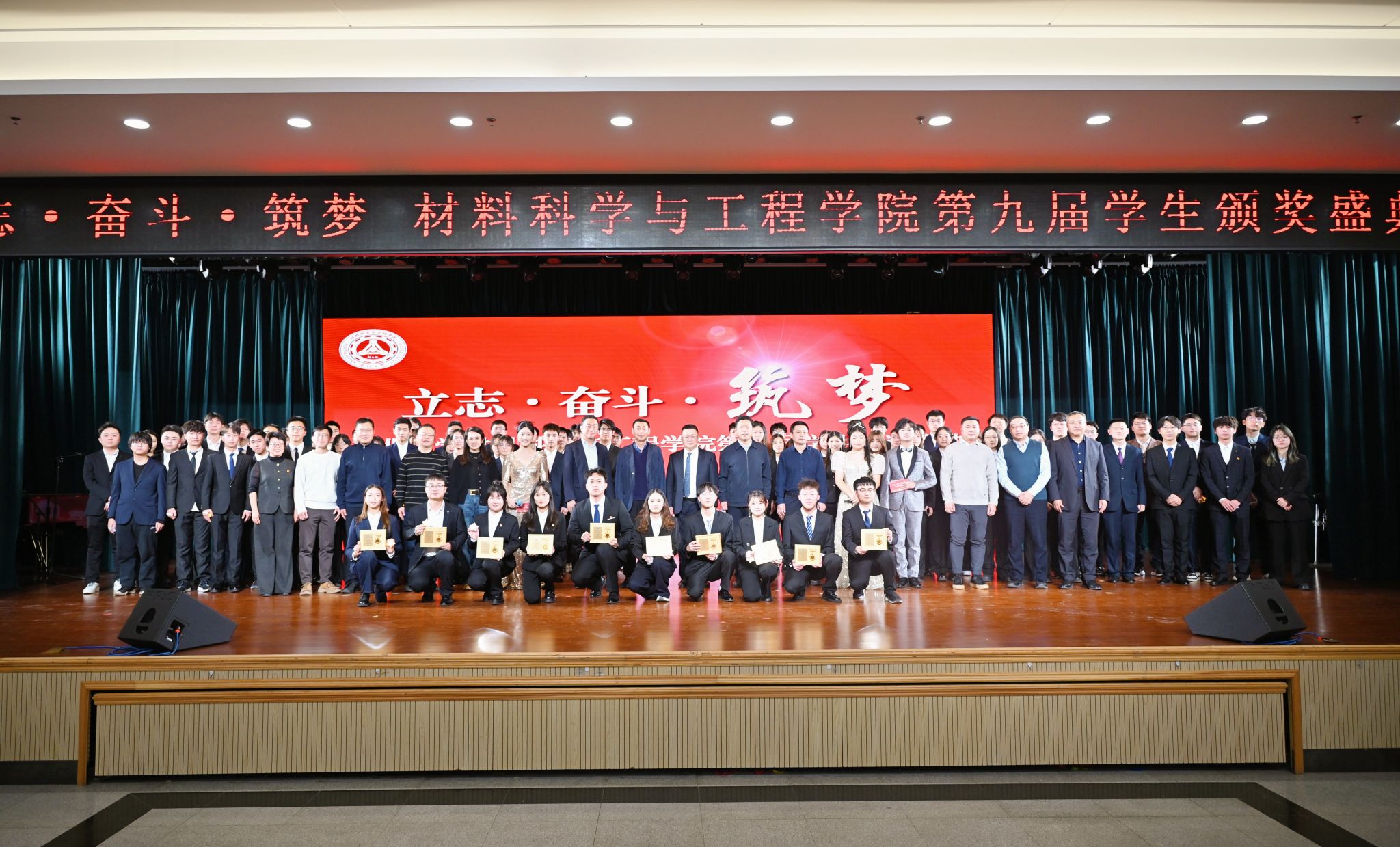 12月15日晚,材料科学与工程学院“立志·奋斗·筑梦”第九届学生年度颁奖盛典在大学生活动中心多功能厅举行。学校相关部门负责人、学院班子成员、优秀专业教师代表、班导师代表、全体学生工作干部及2025级本科生参加典礼。宁波创润新材料有限公司、辽宁红银金属有限公司、仪景通光学科技(上海)有限公司、沈阳元杰光学技术有限公司等负责人受邀出席。