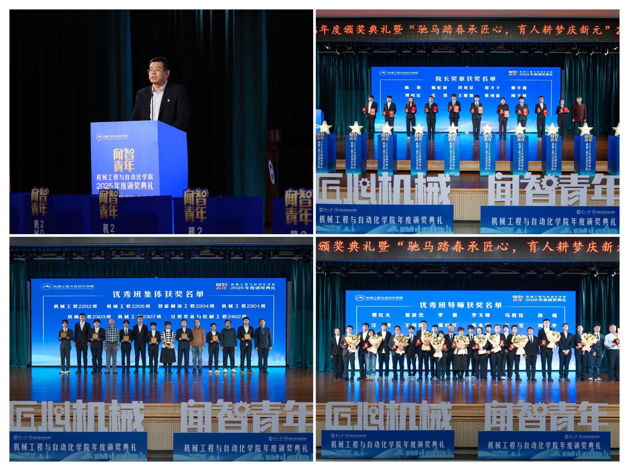 据悉,“闻智青年”是机械工程与自动化学院着力打造的文化育人品牌。本次颁奖典礼既是年度成果的集中展示,也是典范树立、激励进取的重要平台,旨在引导全体学生以先进为榜样,坚定理想信念、夯实专业基础、锻造创新能力,努力成长为具有家国情怀、全球视野与创造活力的卓越工程人才,为学校“双一流”建设和高质量发展注入青春力量。