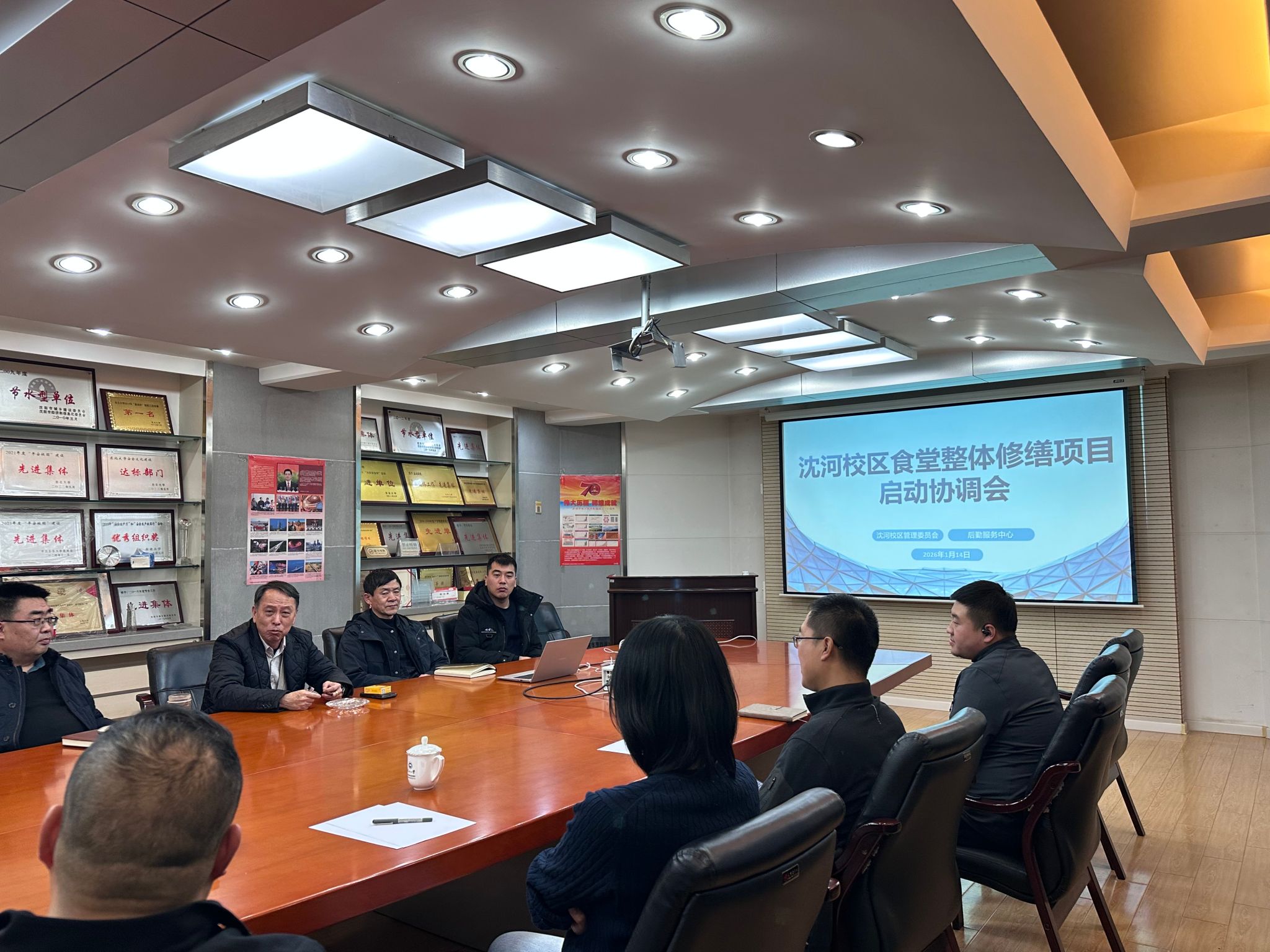 1月14日下午,沈河校区管委会与后勤服务中心在沈河校区办公楼三楼会议室联合举行沈河校区食堂整体修缮项目启动协调会。沈河校区管委会主任张兴杰、副主任张宏宇,后勤服务中心副主任姜孝宇及相关工作人员参加会议。