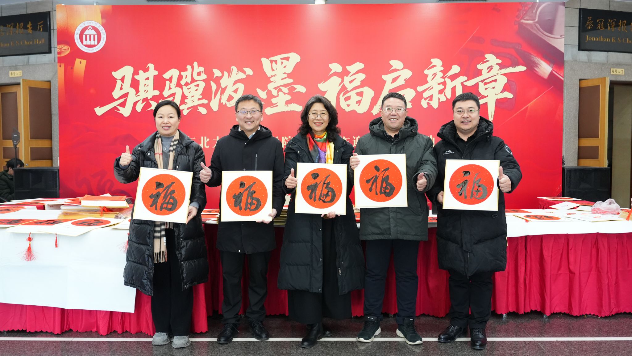 近日,艺术学院举办“骐骥泼墨 福启新章”迎春送福系列活动。活动于12月24日和31日下午分别在离退休处活动中心和汉卿会堂一楼大厅开展。学院领导班子与全院师生齐聚,以笔墨为媒、以匠心贺岁,共迎马年新春,两场活动累计吸引全校近千人次参与,墨香萦绕间尽显浓厚年味,用传统文化实践践行“以美育人”理念,让文化浸润人心。