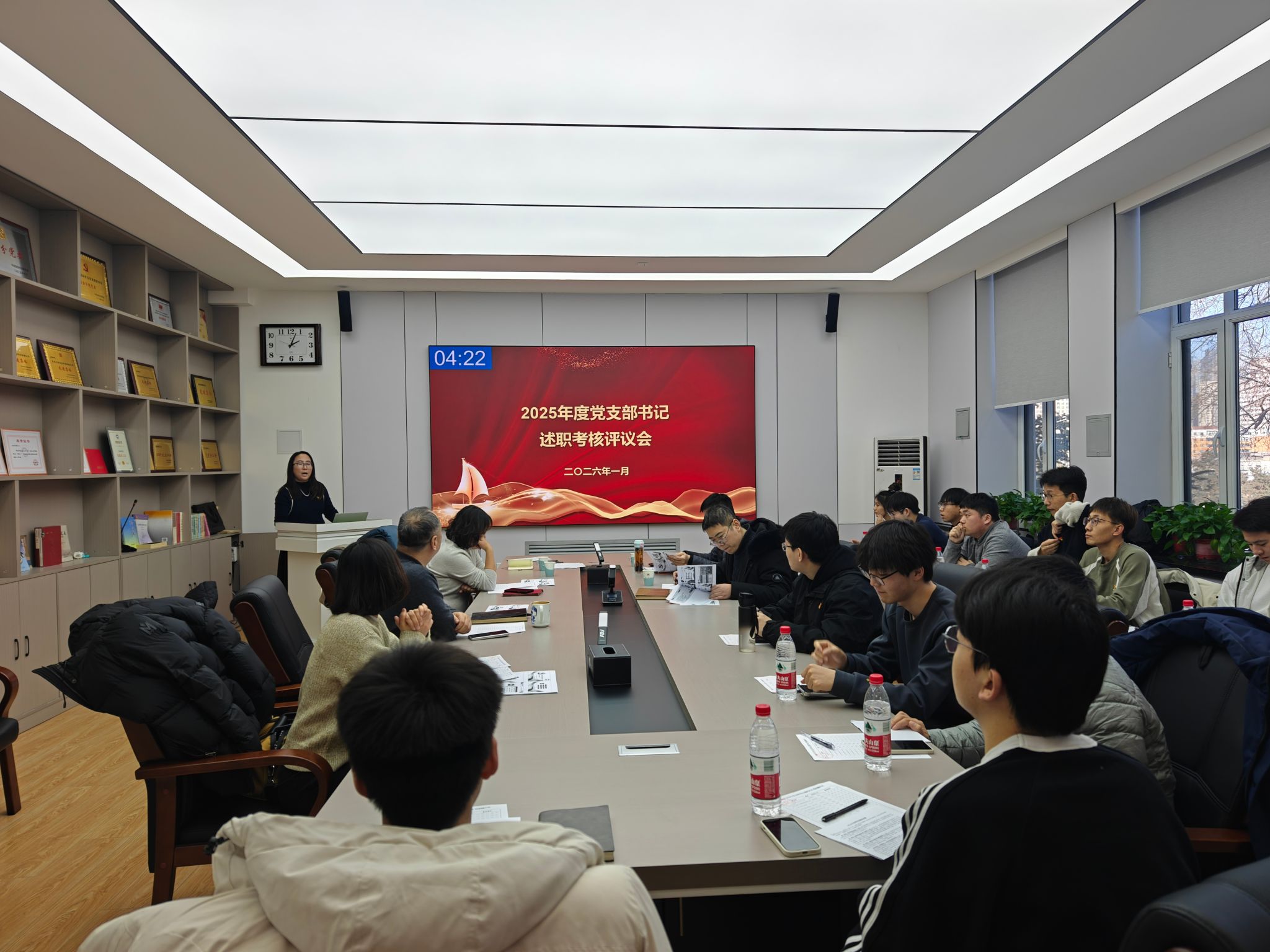 学院党委主要负责人在总结讲话中对各党支部2025年党建工作取得的成绩给予了充分肯定,全体党支部书记认真履行“第一责任人”职责,党建基础不断夯实,特色品牌逐步形成,为学院“双一流”建设和事业高质量发展提供了坚强的组织保障;希望各党支部以此次述职考评为契机,进一步强化党建引领作用。一要持续深化理论学习实效,筑牢思想根基;二要扎实推进党支部标准化规范化建设,推动“金立方”党建矩阵落地见效,推动党建工作与OK138太阳集团建设、人才培养、科研创新等中心工作同频共振;三要创新党建活动形式与载体,强化党团班一体化建设,不断增强党组织的凝聚力、向心力和吸引力;四要建立问题整改台账,实行闭环管理,持续补短板、强弱项、创特色,切实把述职评议的成果转化为推动工作的实际行动。