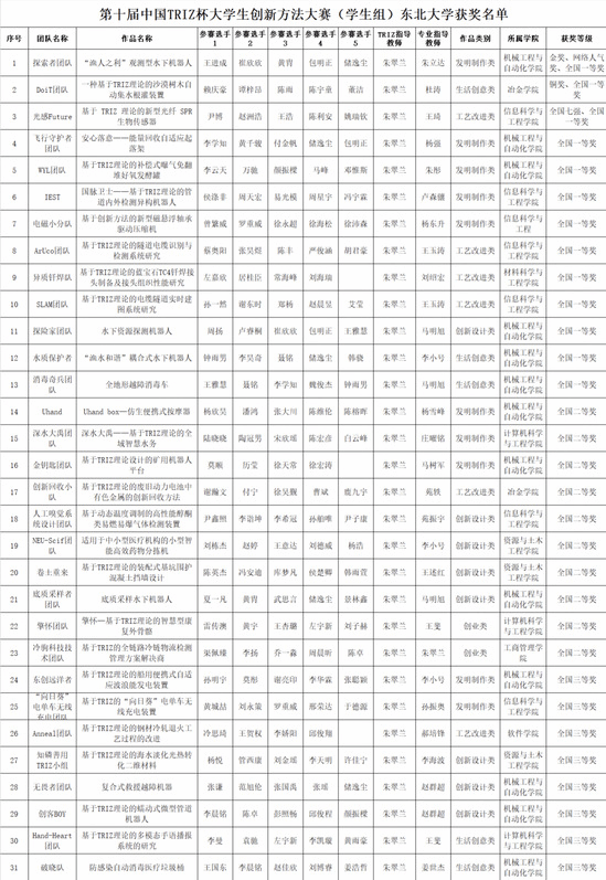 金奖项目由创新创业学院朱翠兰作为TRIZ指导教师、机械工程与自动化学院朱立达作为专业指导教师,王进成、崔欣欣、黄胄、包明正、储逸尘共同完成;铜奖项目由创新创业学院朱翠兰作为TRIZ指导教师、冶金学院杜涛作为专业指导教师,赖庆豪、谭梓昂、陈雨、陈宇童、董洁共同完成。创新创业学院朱翠兰以全国第一的成绩荣获大赛教师组全国一等奖(全国仅3项)。太阳成集团tyc33455全国一等奖获奖数量占比大赛一等奖总数32.5%,获奖总数位居全国高校首位。