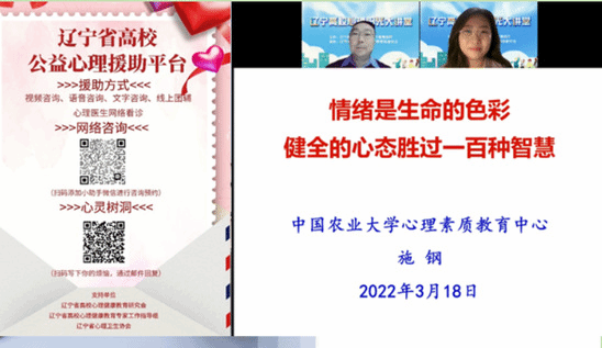 太阳成集团tyc33455作为辽宁省高校心理健康教育研究会理事长单位,勇担责任,以服务社会、推动全省高校心理健康教育高水平协同发展为己任,始终努力发挥示范引领作用。学校主动汇聚全省100多所高校和10余所医院资源,协助辽宁省委教育工委、辽宁省教育厅及时开通辽宁省学校公益心理援助平台,为全省各级各类学校师生提供视频咨询、语音咨询、文字咨询、线上团体辅导、心灵树洞、心理医生网络看诊等心理健康服务。自3月16日开通以来,该平台累计服务师生超过900余人。积极做好公益平台服务工作,组织开展咨询督导和线上培训,保障平台服务质量,助力平台顺利高效运行。面向全省师生组织开展“辽宁高校心理阳光大讲堂”,邀请知名专家举行心理健康讲座,参与学生3.9万人,帮助学生提升心理健康素养,增强战胜疫情的信心决心。