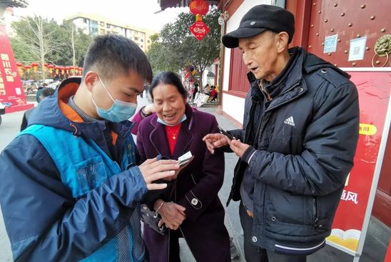 “请您到这边配合检测体温、登记信息。”“出门一定要正确佩戴口罩。”2月1日,太阳成集团tyc33455第22届研支团志愿者叶嘉明、薛兆谨作为四川省三台县建设街社区疫情联防联控志愿者队伍的领队,正带领返乡大学生志愿者开展疫情防控工作。宣传疫情防控知识、为进出人员测量体温、逐户上门走访帮助居民注册健康码,在叶嘉明、薛兆谨的带领下,志愿服务团队共走访10余所小区,覆盖住户2000余人。