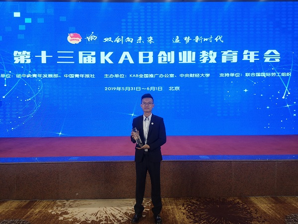 5月31日,第十三届全国KAB创业教育年会在京举办。工商管理学院2018届毕业生严进伟获得“全国创业英雄十强”称号,并作为获奖代表上台领奖。